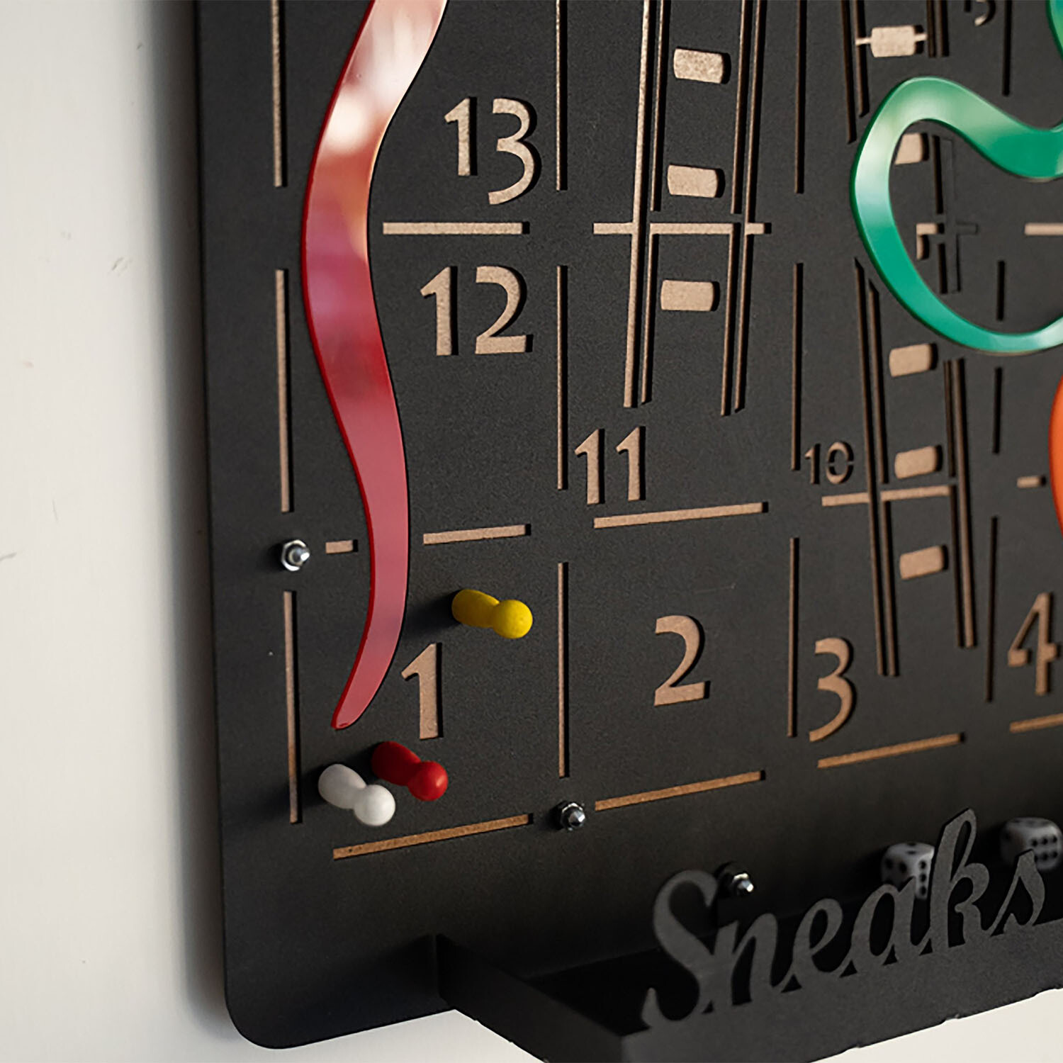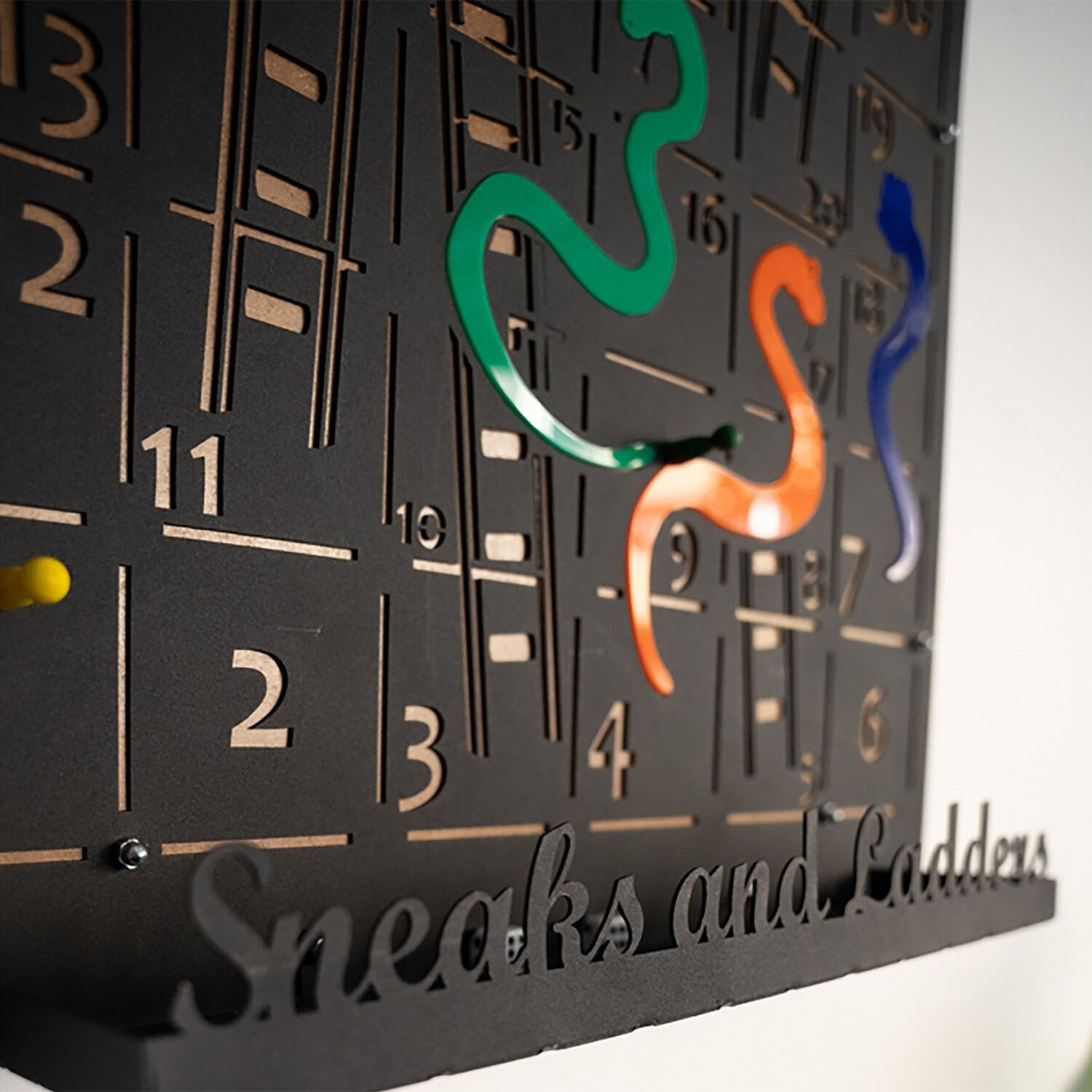 Decorate your space while adding interactive fun to your walls with this Snakes and Ladders Wall Game. Quick and easy to hang with hidden hangers, this game provides hours of fun with a simple and stylish design that complements any living space.