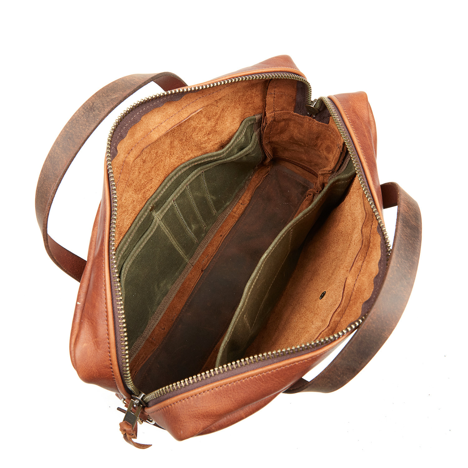 A chic briefcase for the office, or a convenient bag for your next day trip, the Rutledge Briefcase features a premium leather construction that ensures both durability and style. With ultra comfortable handles, handsome brass hardware, and upgraded with even more pocket space, this versatile briefcase has a vintage appeal that's simply irresistible.