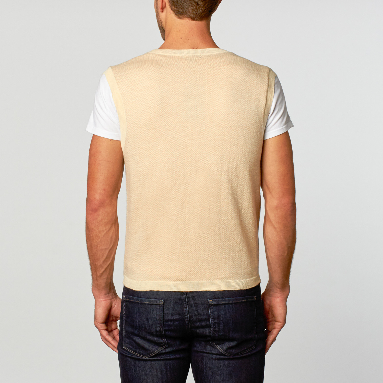 Cashmere Blend Herringbone Waistcoat // Beige