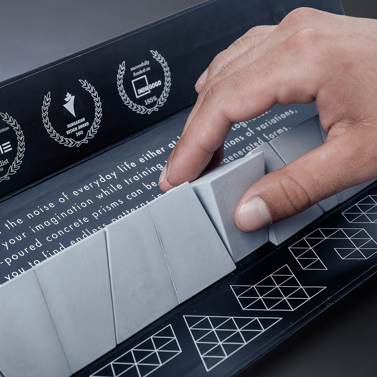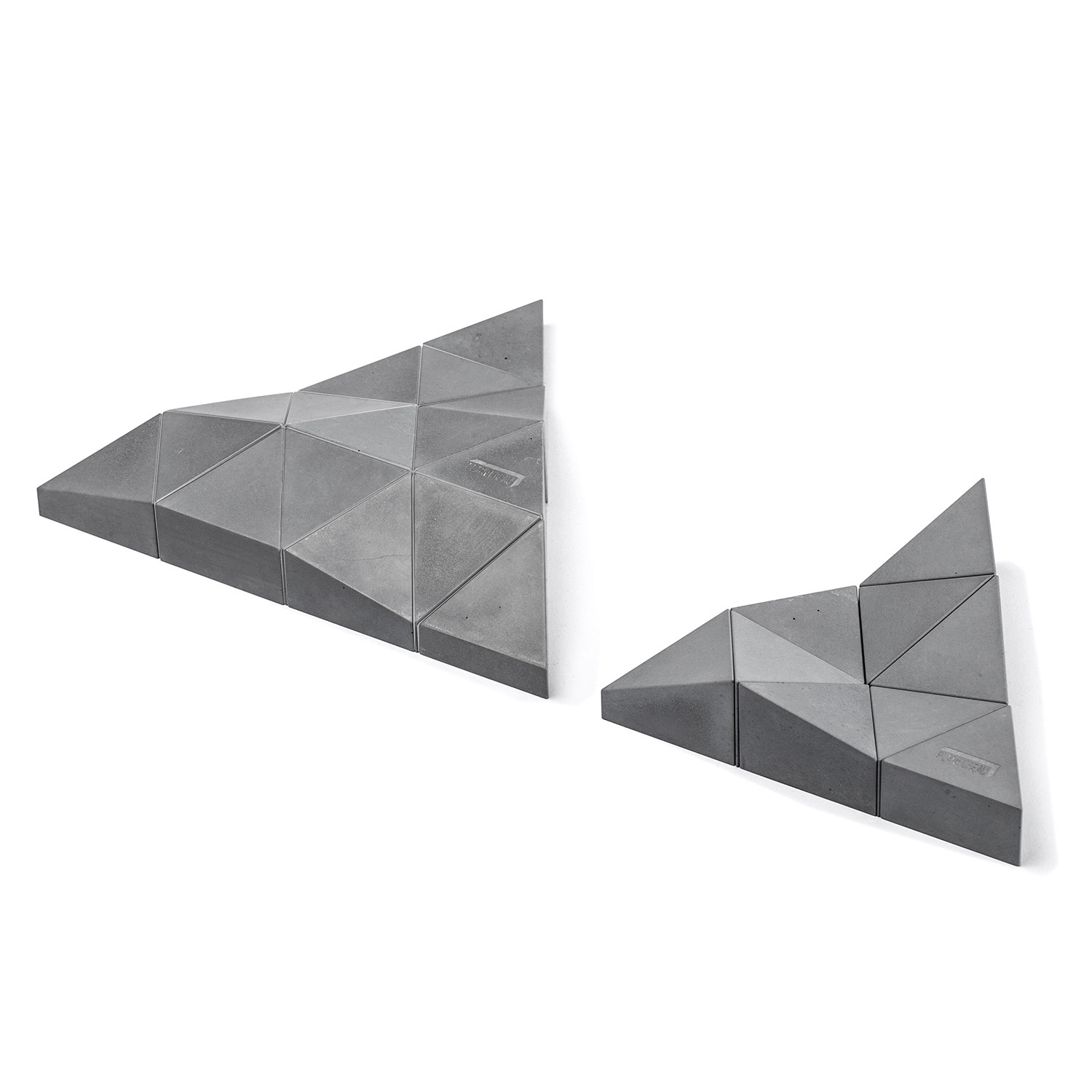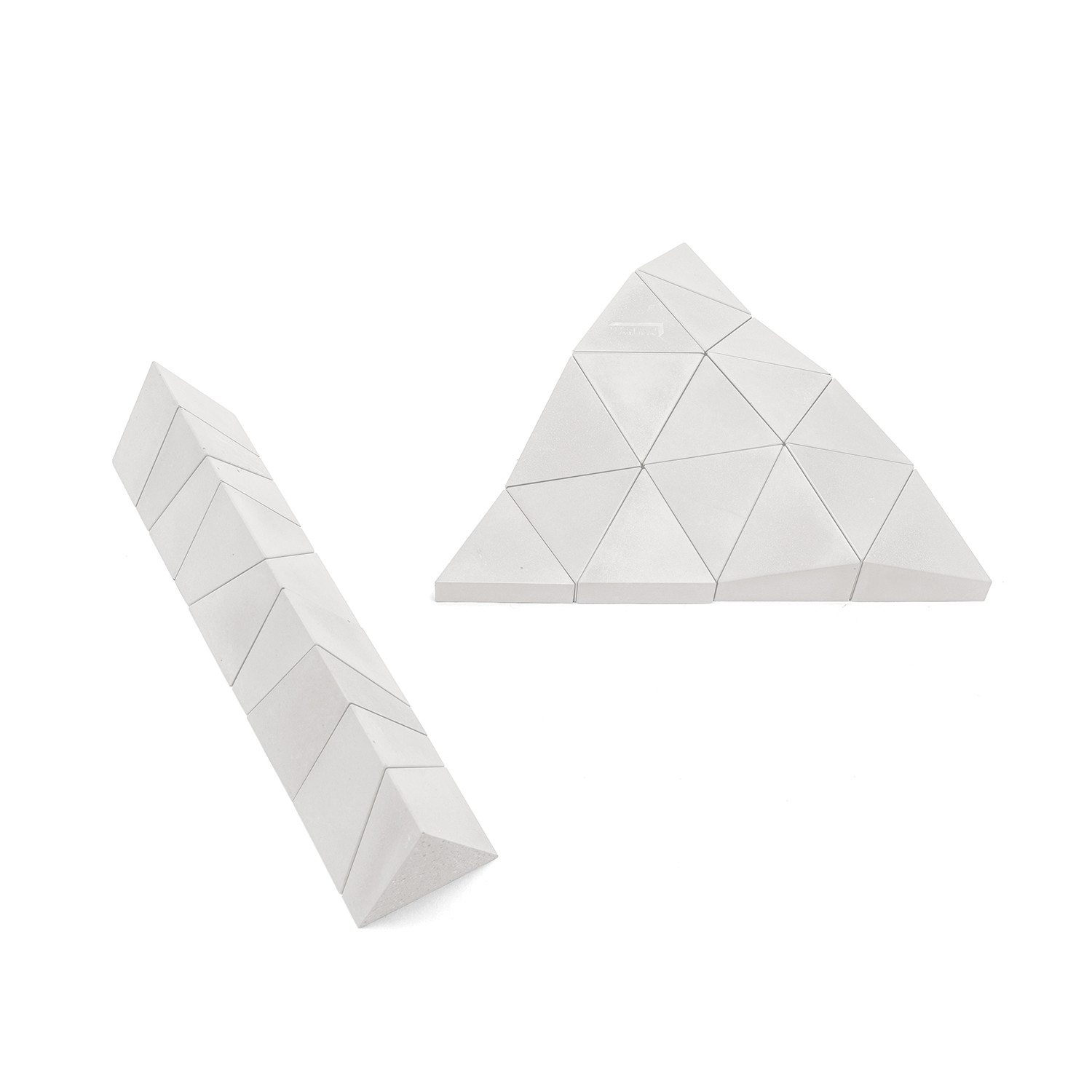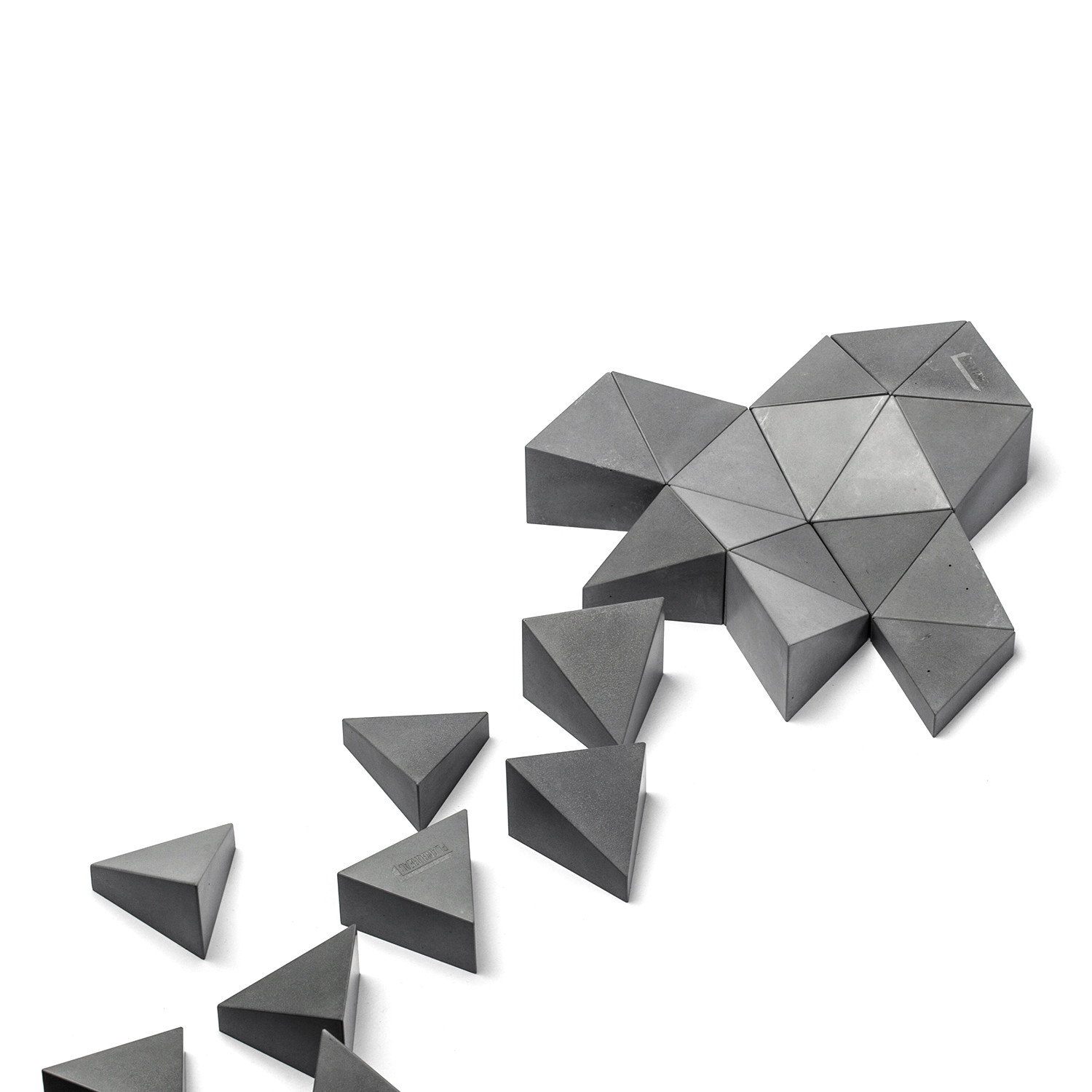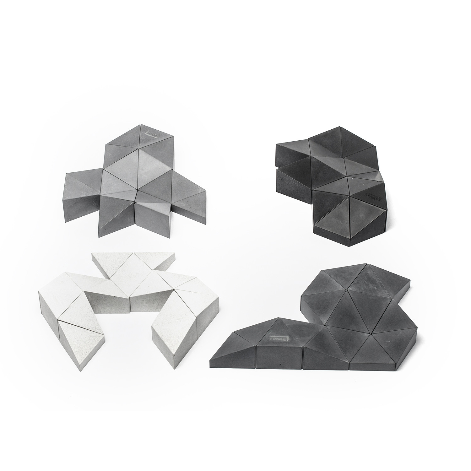 LOGIFACES is a set of prisms, each with different top angles, hand-poured from concrete. LOGIFACES can be arranged in millions of variations, allowing you to find endless patterns in its computer-generated forms. There is only one rule to the game: Create a form by placing the prisms next to each other to form a continuous surface. Boost your creativity and train your mind with this set of hand-poured concrete prisms.