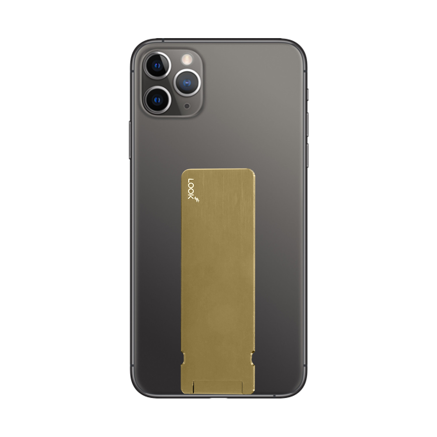 The Lookstand is a lightweight, ultra discreet aluminum phone stand that attaches directly to your device for ultimate portability. With 3 preset heights to choose from, Lookstand can securely lift your device over 7" high for a more comfortable viewing angle when taking a video call, streaming your favorite content, or working on the go. Mount your device horizontally or vertically and adjust the angle up to 120º to position your screen exactly how you want it. When not in use, the Lookstand easily folds down so you barely notice it's there.