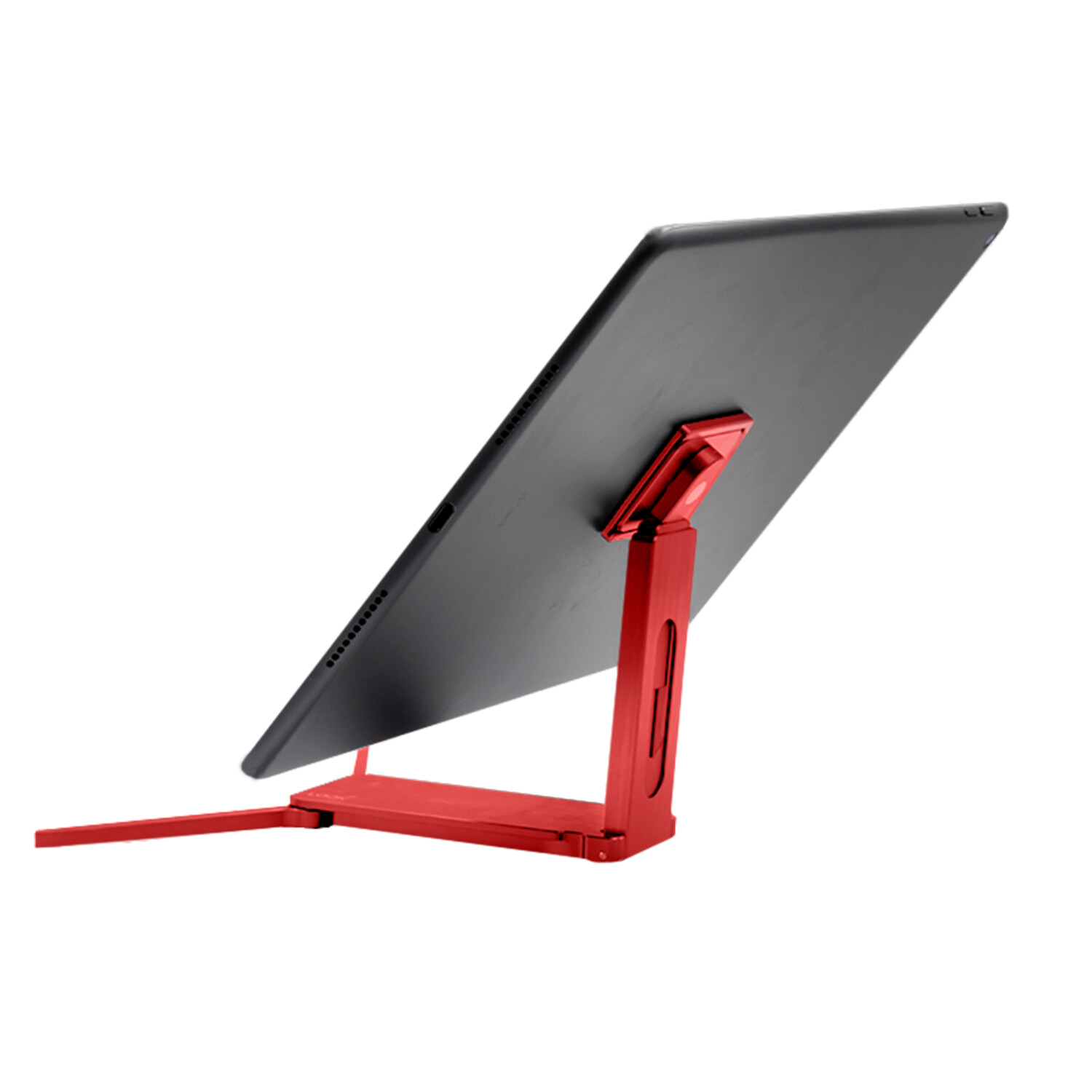 The Lookstand Max is a lightweight, ultra discreet aluminum tablet stand that attaches directly to your tablet for ultimate portability. With 3 preset heights to choose from, Lookstand can securely lift your device over 7" high for a more comfortable viewing angle when taking a video call, streaming your favorite content, or working on the go. Mount your device horizontally or vertically and adjust the angle up to 120º to position your screen exactly how you want it. When not in use, the Lookstand easily folds down so you barely notice it's there.