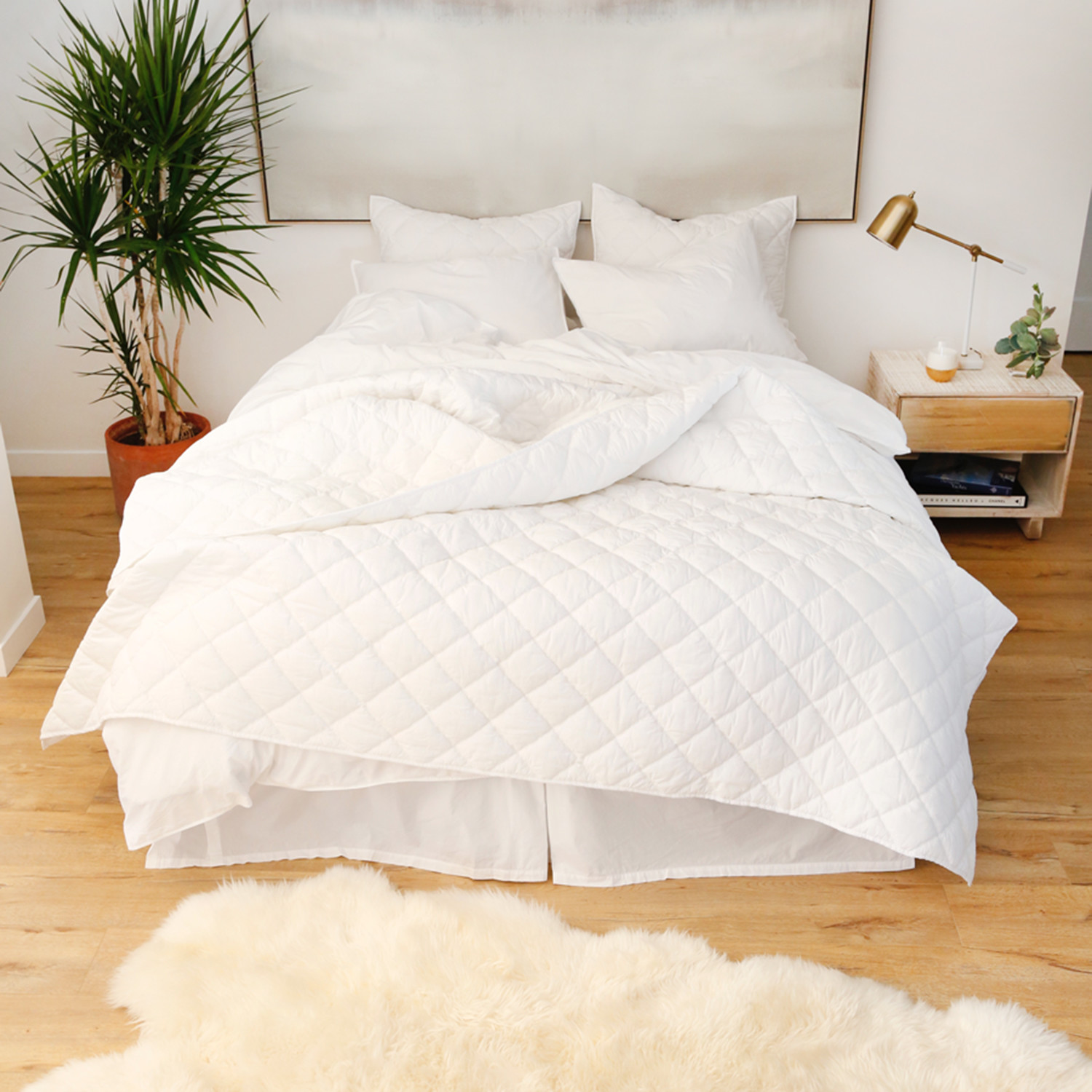 The Limited Edition Cotton Percale Coverlet Set is a fresh take on the traditional quilt. It includes a Coverlet and two Quilted Pillow Shams woven from Long Staple Egyptian Cotton, making your bedding perfectly light, crisp, and cool.