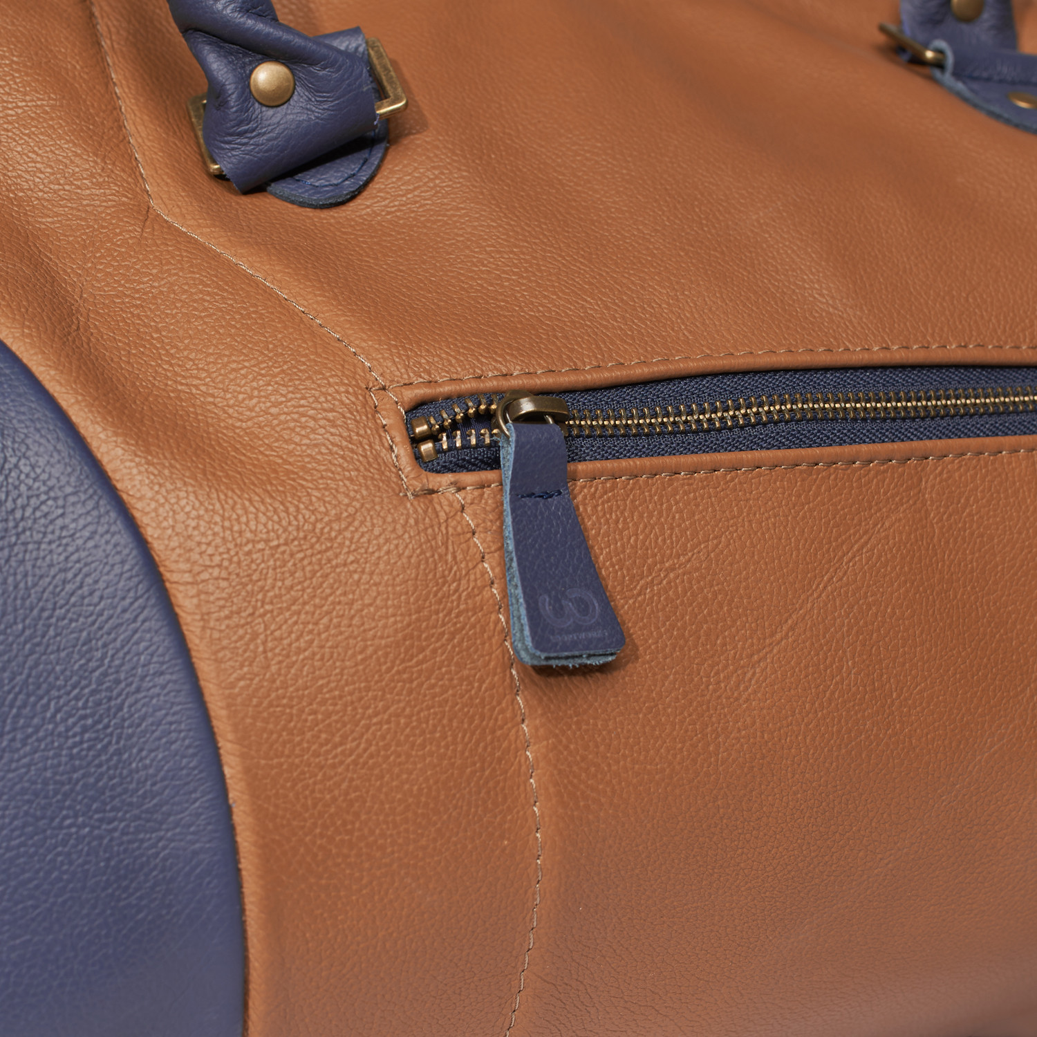 Crafted from repurposed, water resistant leather from former Southwest Airlines seat covers, this LUV Seat Weekender is made for overnight trips and around-town travel alike. Each bag has its own visual personality acquired from the seat's journey. These characteristics are unique to every bag, making it truly one of a kind. With ample room for a weekend of fun, it packs all the essentials for adventures big and small. By repurposing the leather, this bag conserves over 4,000 gallons of water and avoids 72% of CO2 emissions.