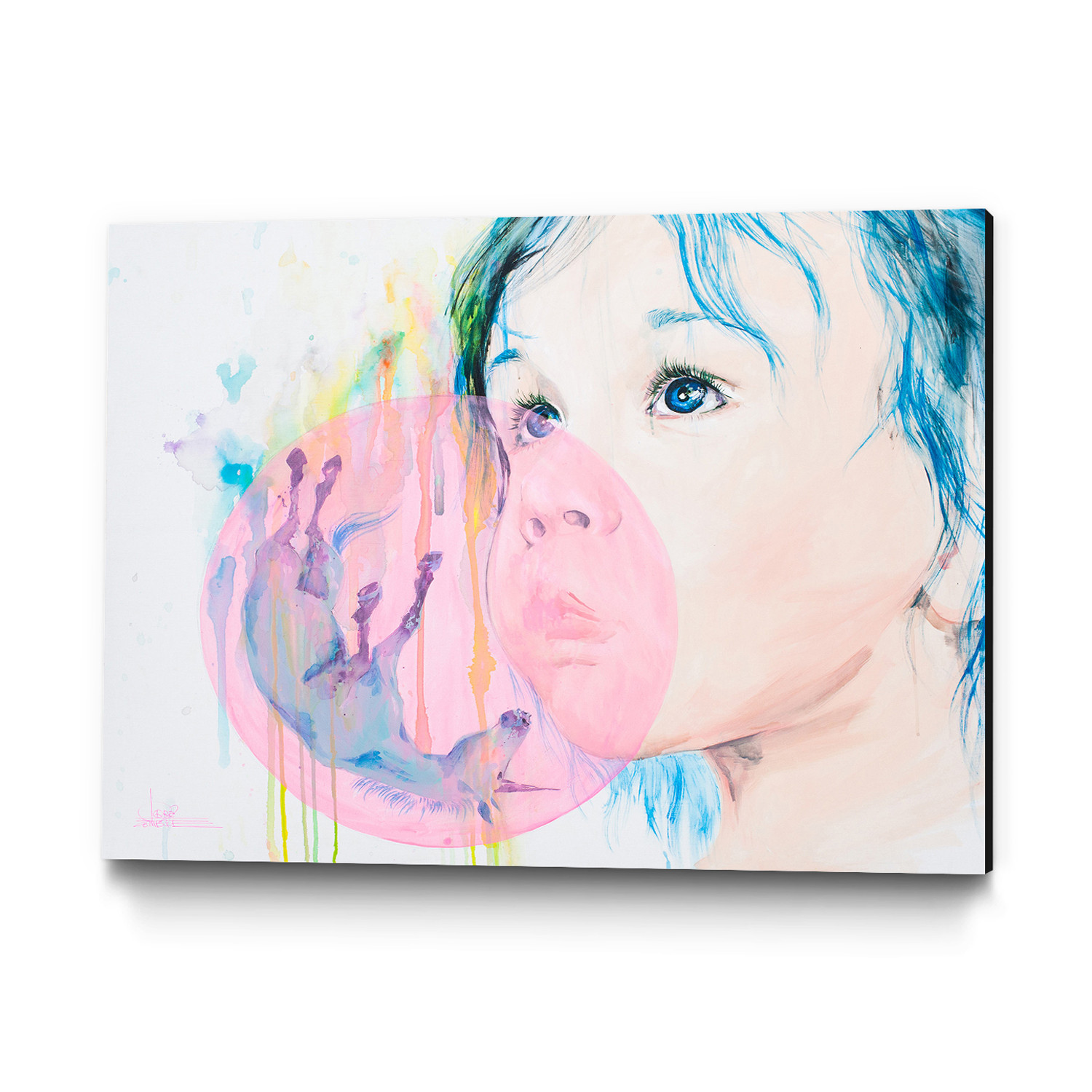 A unicorn emerges from a child's pink bubblegum in Unicorn Born. Lora Zombie uses warm, inviting tones, welcoming your appreciation of the painting's assets. This high-quality print on stretched canvas comes ready to hang anywhere.