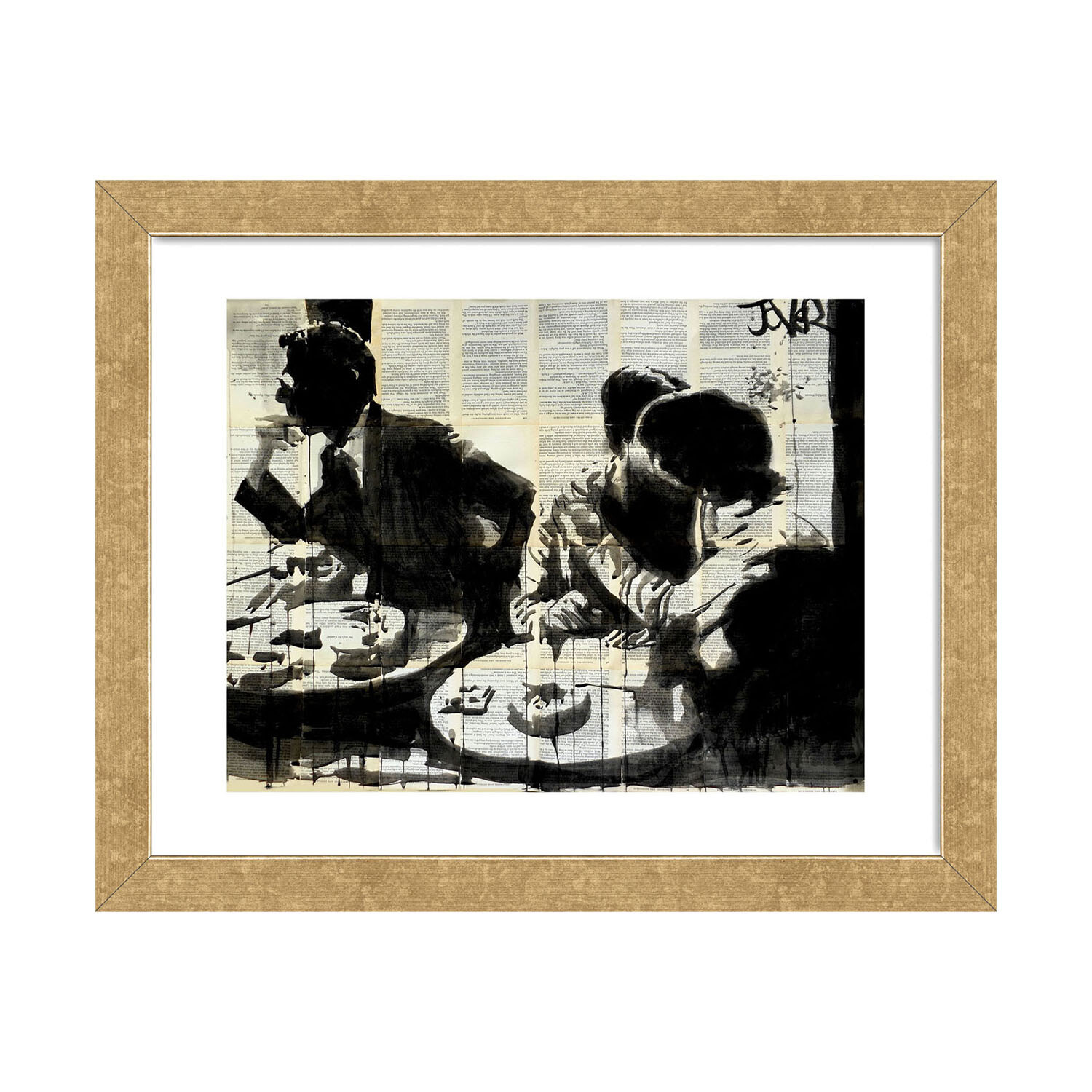 Loui Jover is an Australian painter and artist known for his artwork in ink wash paintings on vintage book pages. Each piece displays a romantic love scene, complicated emotions of female faces, or stormy weathered silhouettes. This collection of high-quality art prints is a unique conversation piece to any space.