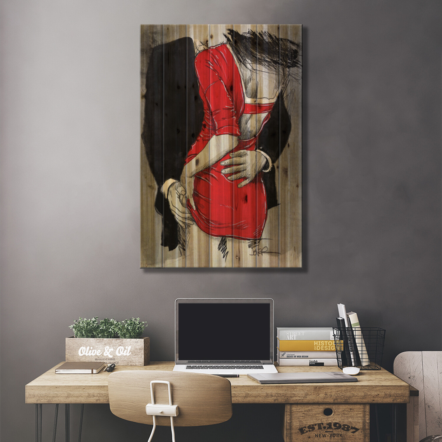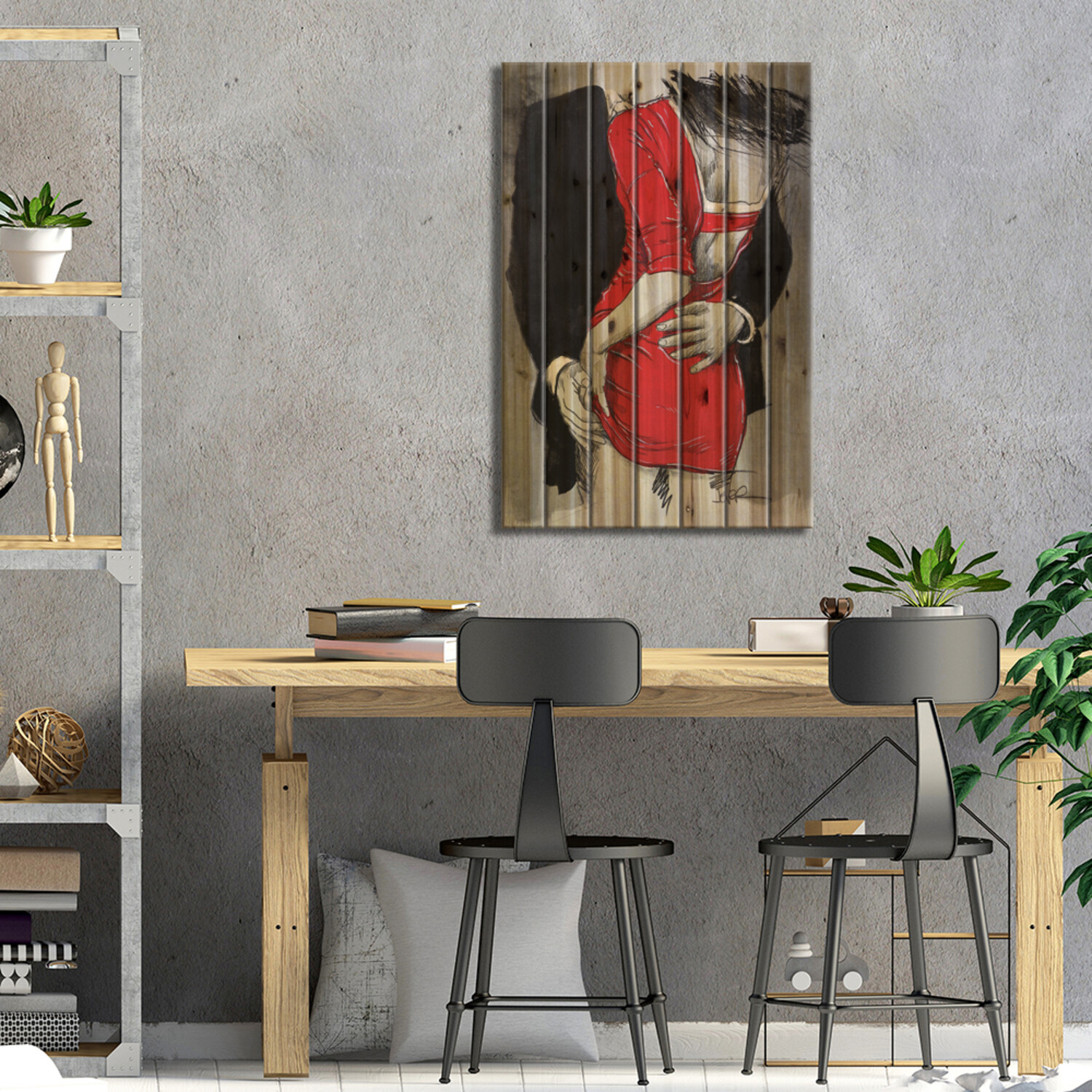 Loui Jover, based in Melbourne, Australia, creates pen and ink art on vintage book pages, as well as minimalist portraits and pop culture imagery. With several pieces revealing stories of romance and passion, his work adds sensual art vibes to your space. Muted color tones and an overarching masculine vibe make this selection of pallet art perfect for any corner of the house that enjoys a subdued style.