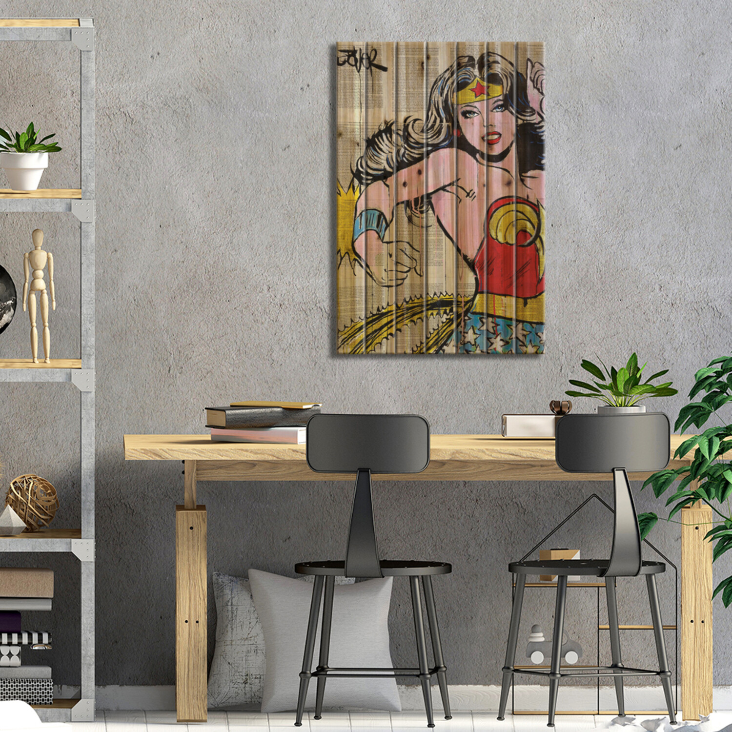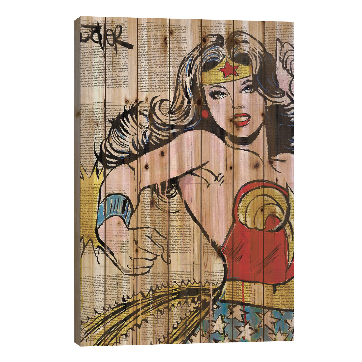 Loui Jover, based in Melbourne, Australia, creates pen and ink art on vintage book pages, as well as minimalist portraits and pop culture imagery. With several pieces revealing stories of romance and passion, his work adds sensual art vibes to your space. Muted color tones and an overarching masculine vibe make this selection of pallet art perfect for any corner of the house that enjoys a subdued style.