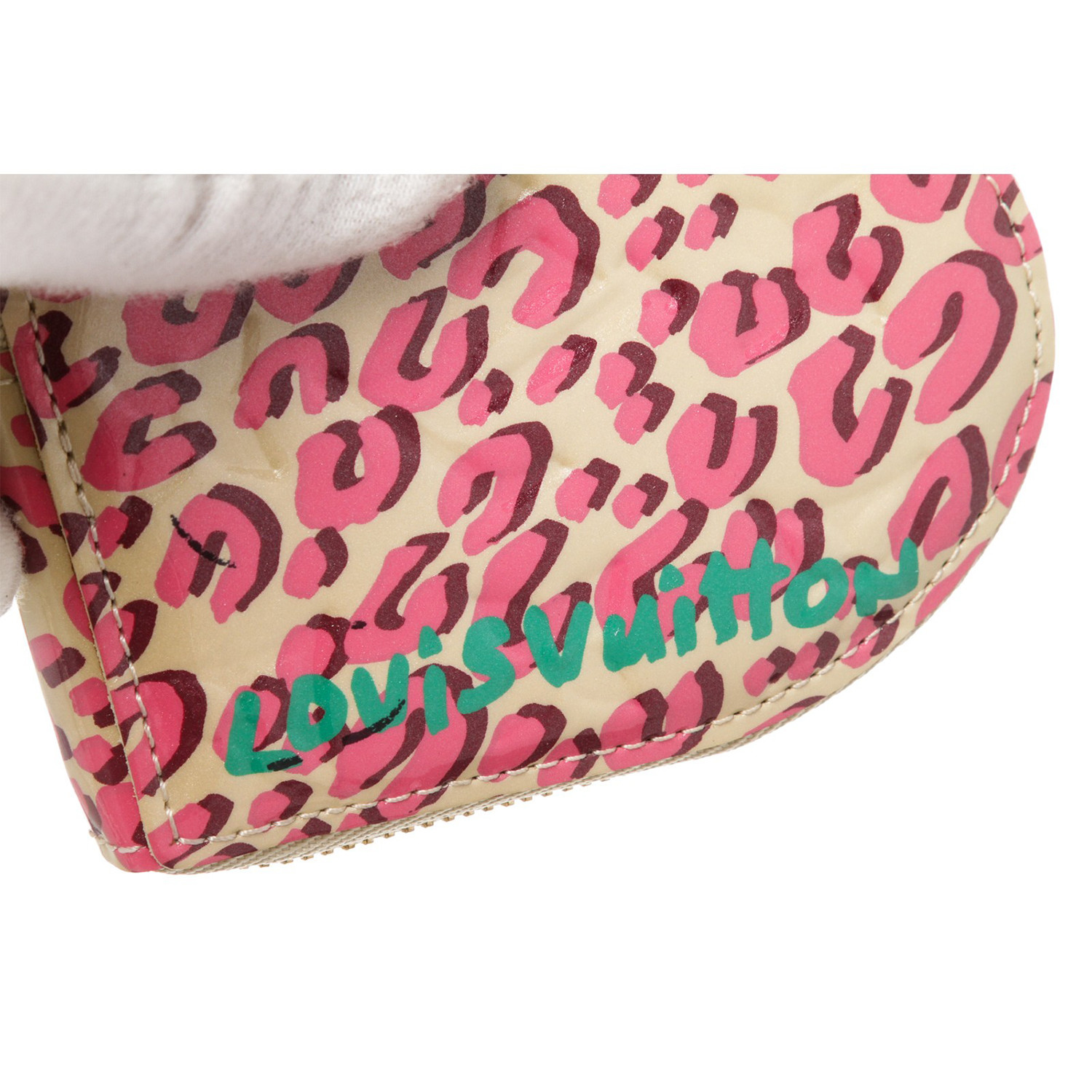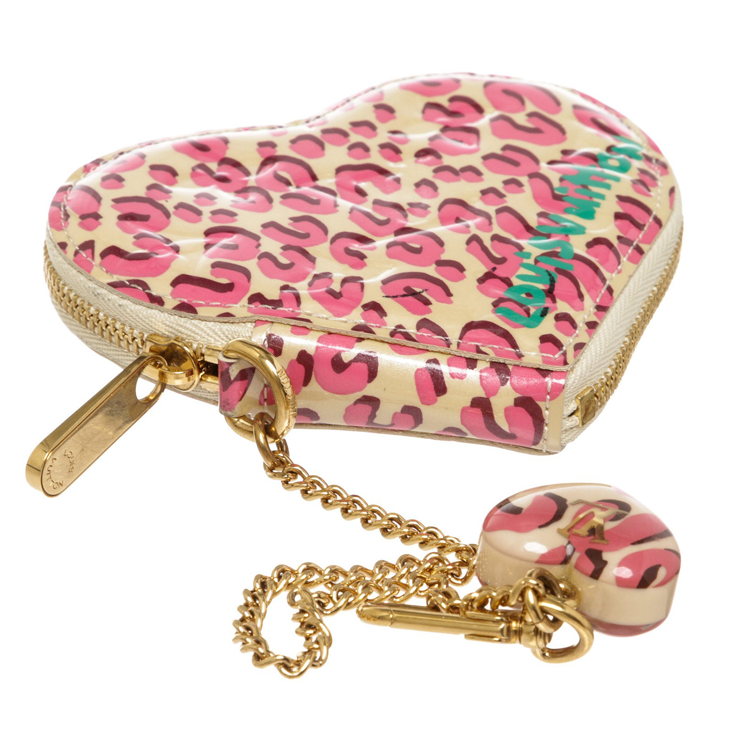 Women's Cheetah Vernis Leather Heart Coin Wallet LTD // Cream + Pink // Pre-Owned