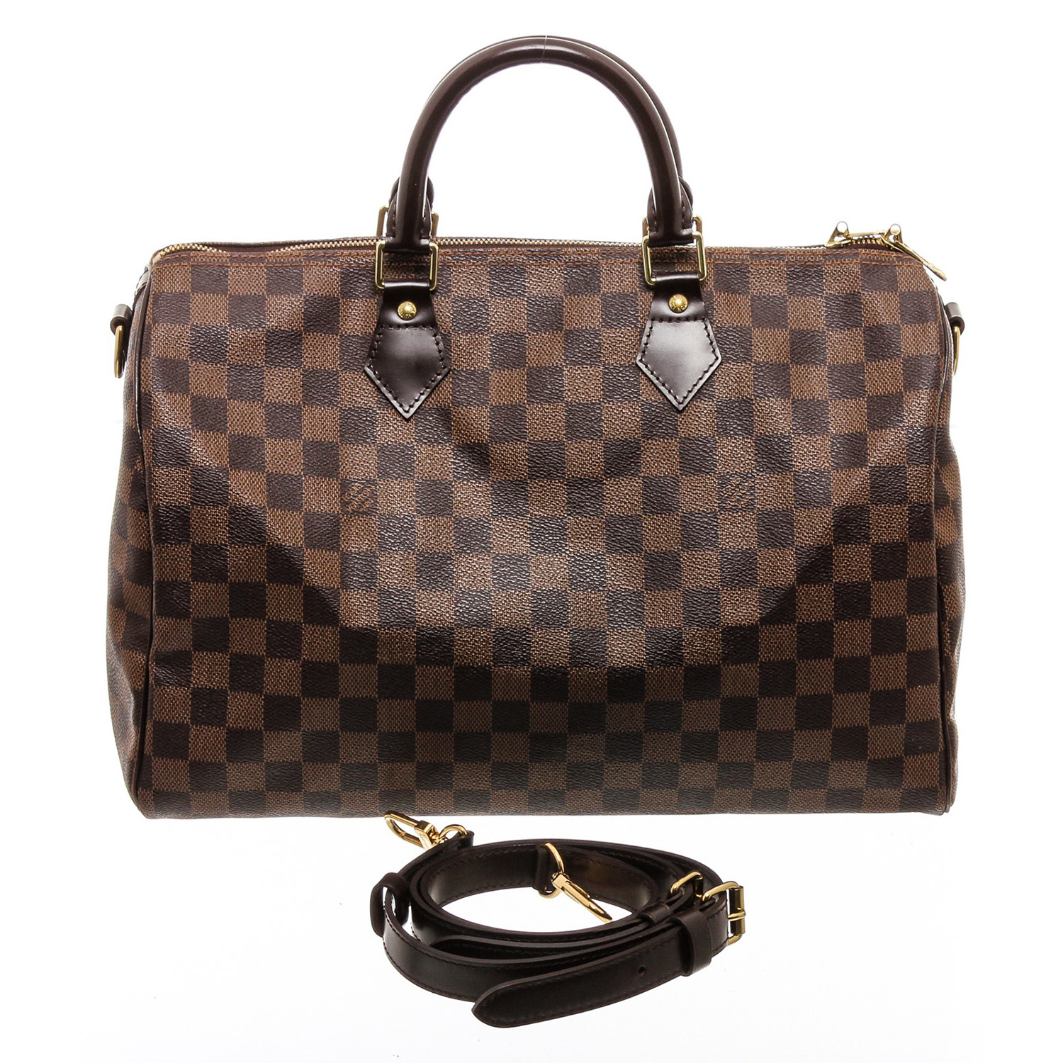 Women's Damier Ebene Speedy Bandouliere 35 cm Bag // Brown // Pre-Owned