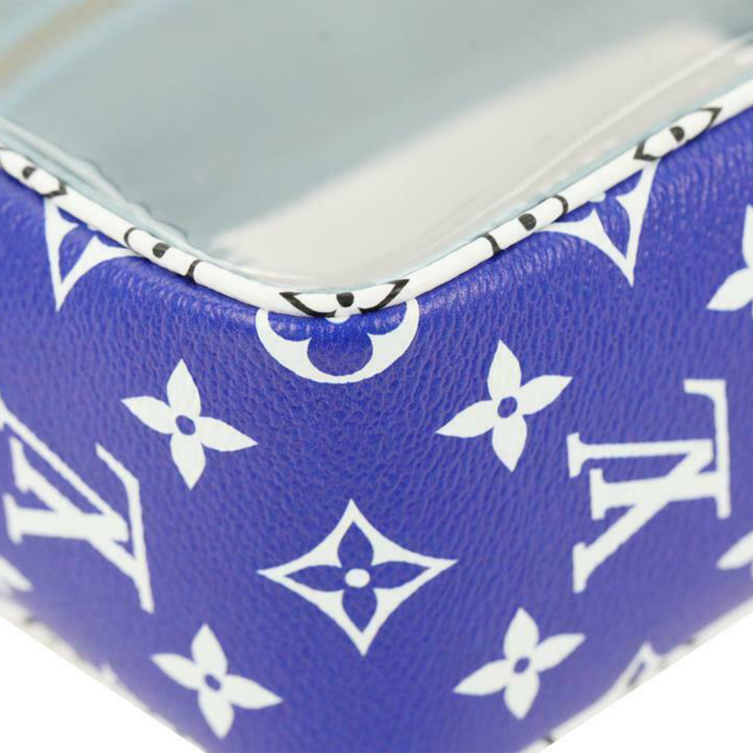 Women's Pouch Capri Multicolor Coated Canvas Beach Bag // Blue // Pre-Owned