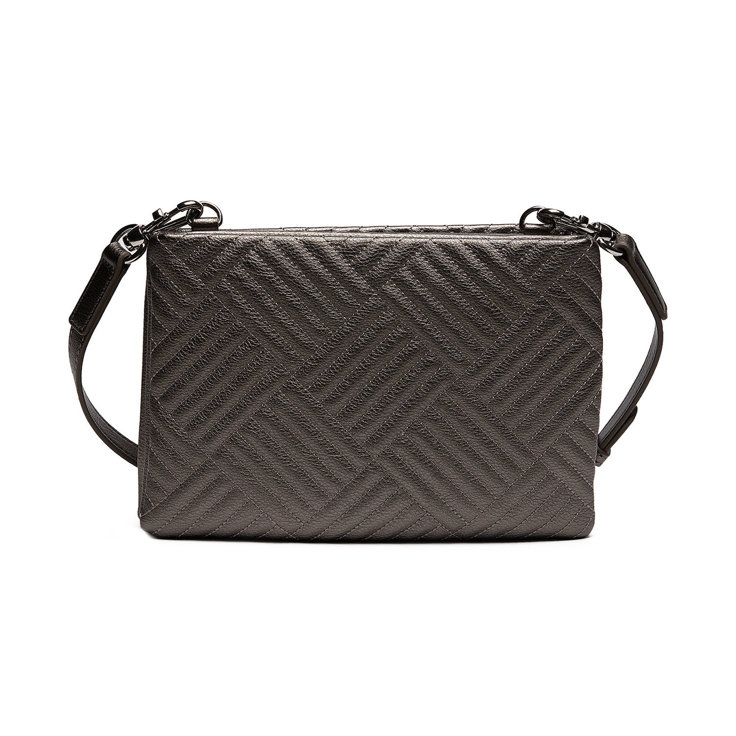 Shiny Quilted Shoulder Bag // Silver + Gray