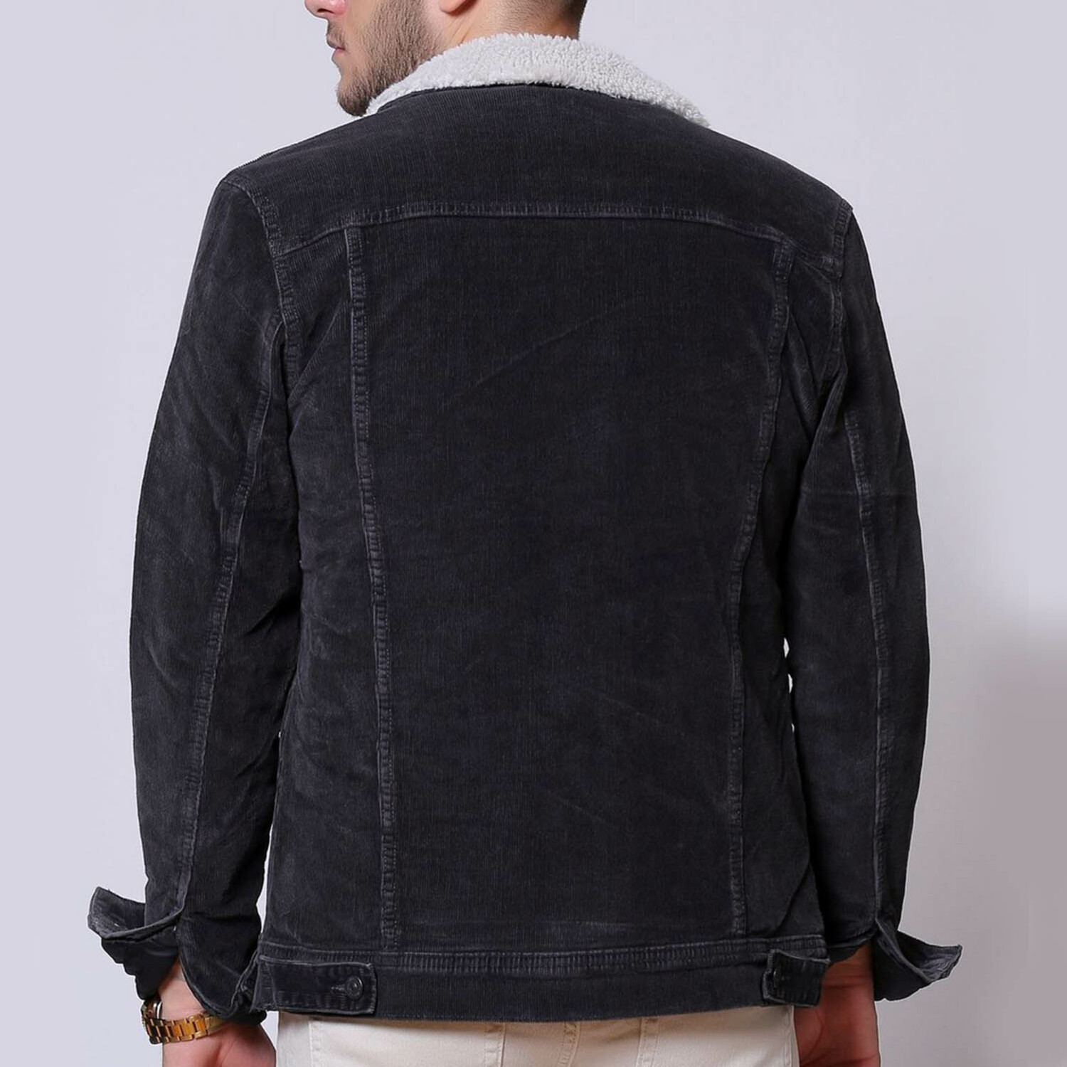 Thin Roving Velvet Sheepskin Buttoned Jacket // Black