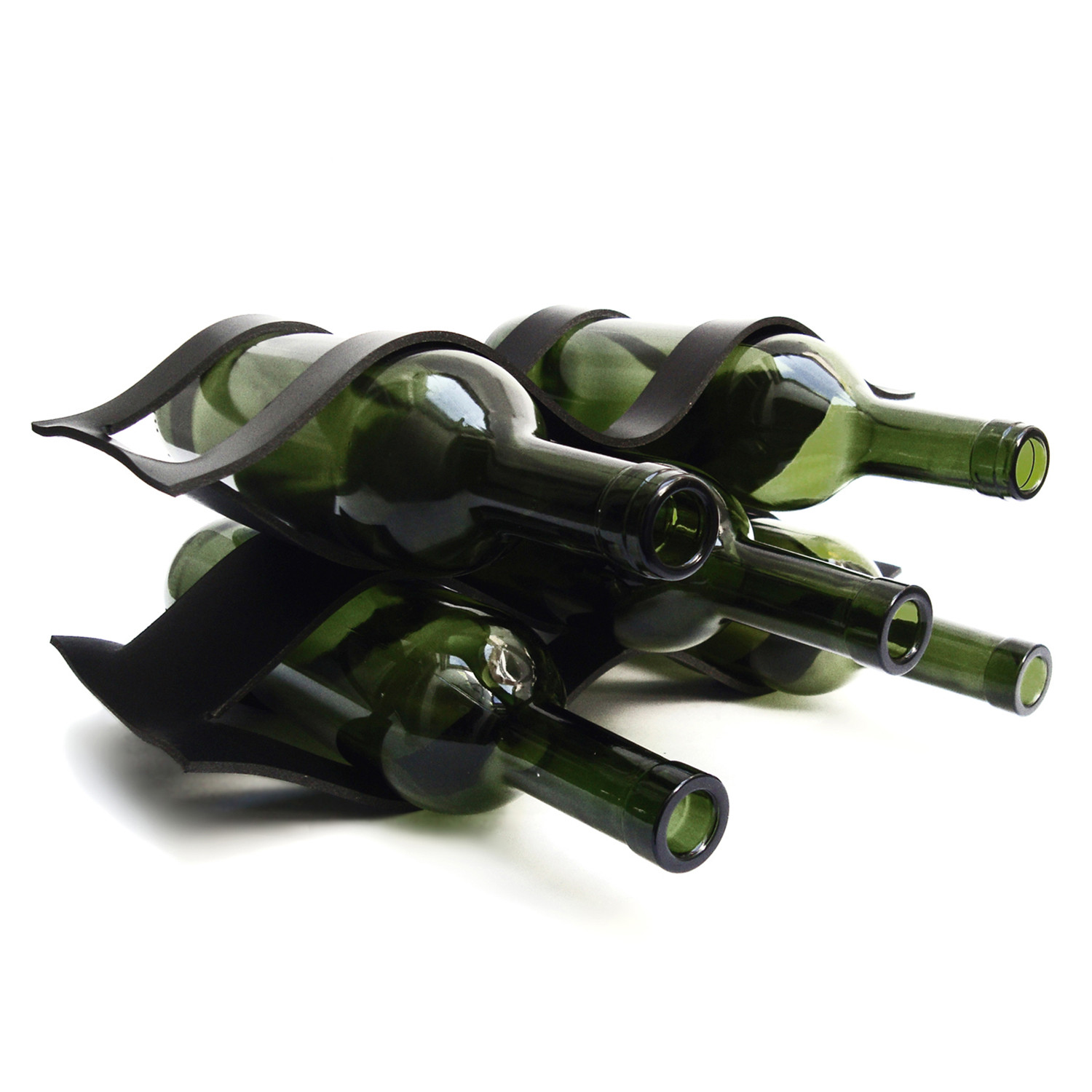 This lovely wine rack holds 5-6 bottles with 100% recycled leather and a flexible make. This holder lays flat and grows when you place bottles inside. It's extremely light and easy to pack and transport for the adventurous wine drinker.