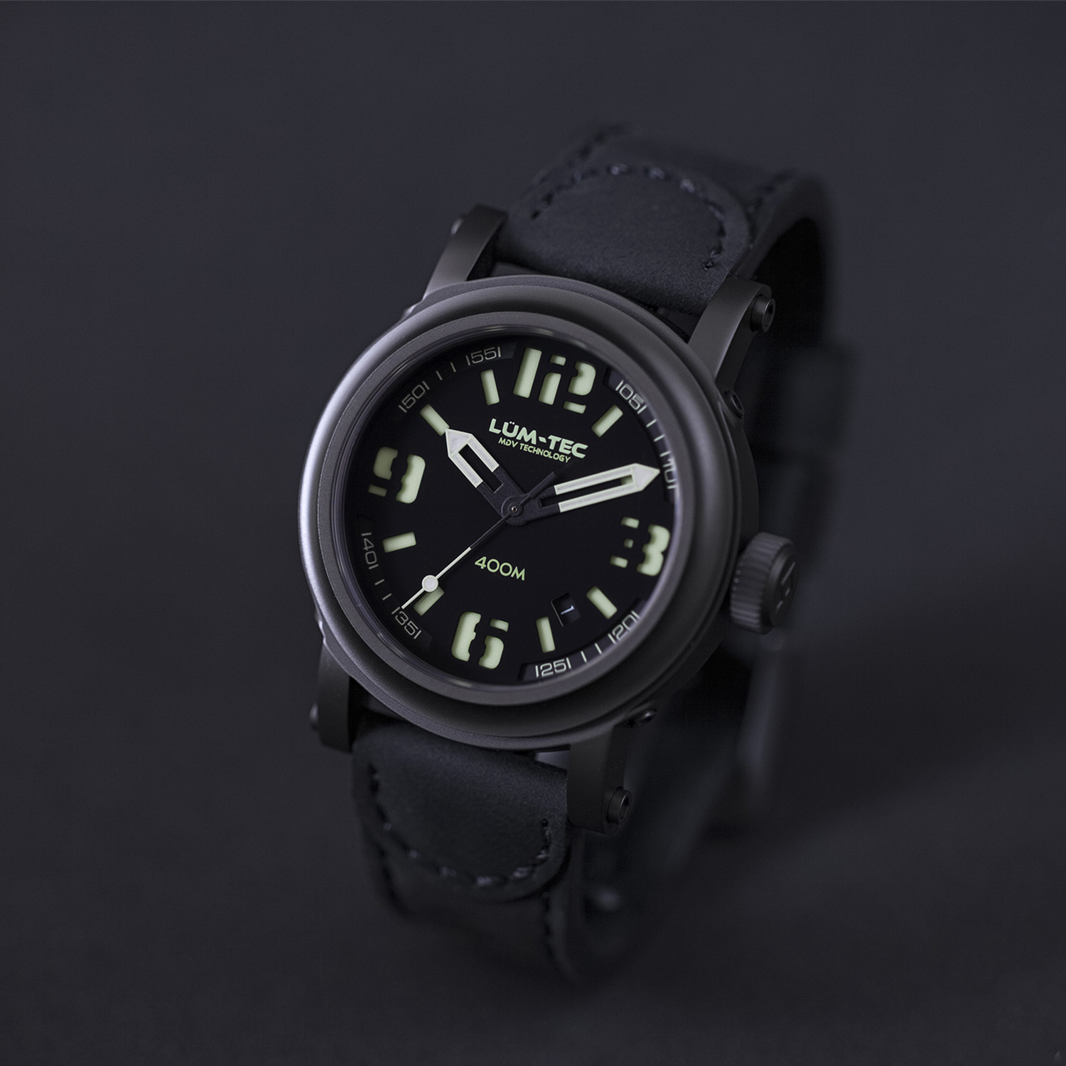 Every LÜM-TEC watch features exclusive MDV Technology, a special 8-layer application of ultra bright glowing Super-Luminova photoluminescent material. MDV hands and dials are extremely visible in all light conditions, making this watch perfect for red-eye travelers, evening joggers, and casual divers alike.