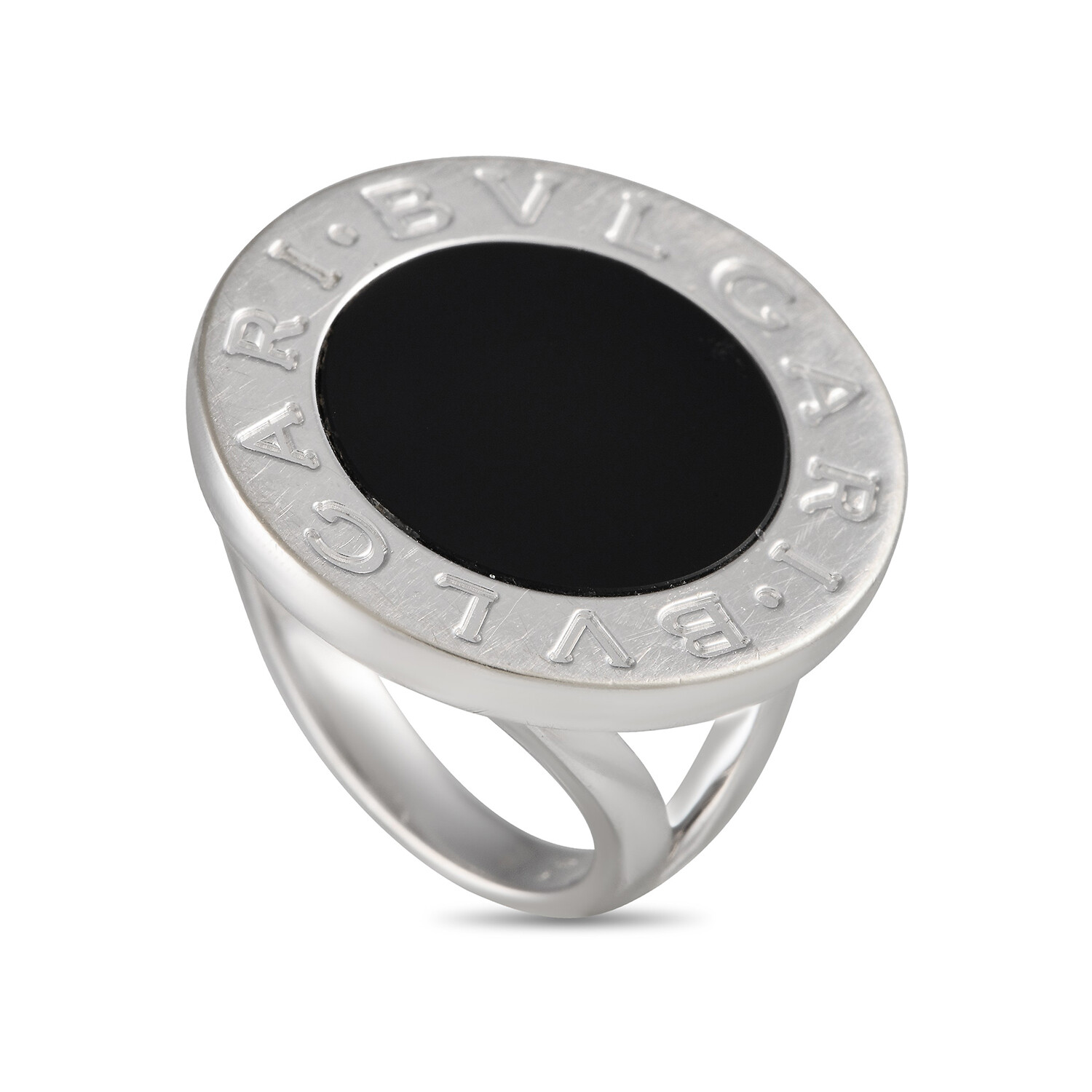 Bulgari // 18K White Gold Onyx Ring // Ring Size: 7.75 // Estate