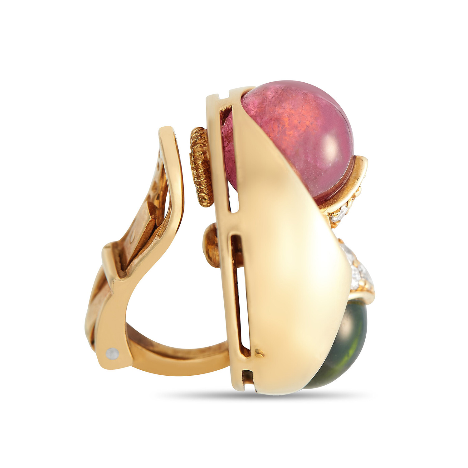 Bulgari // 18K Yellow Gold Diamond + Tourmaline Clip-On Earrings // Estate