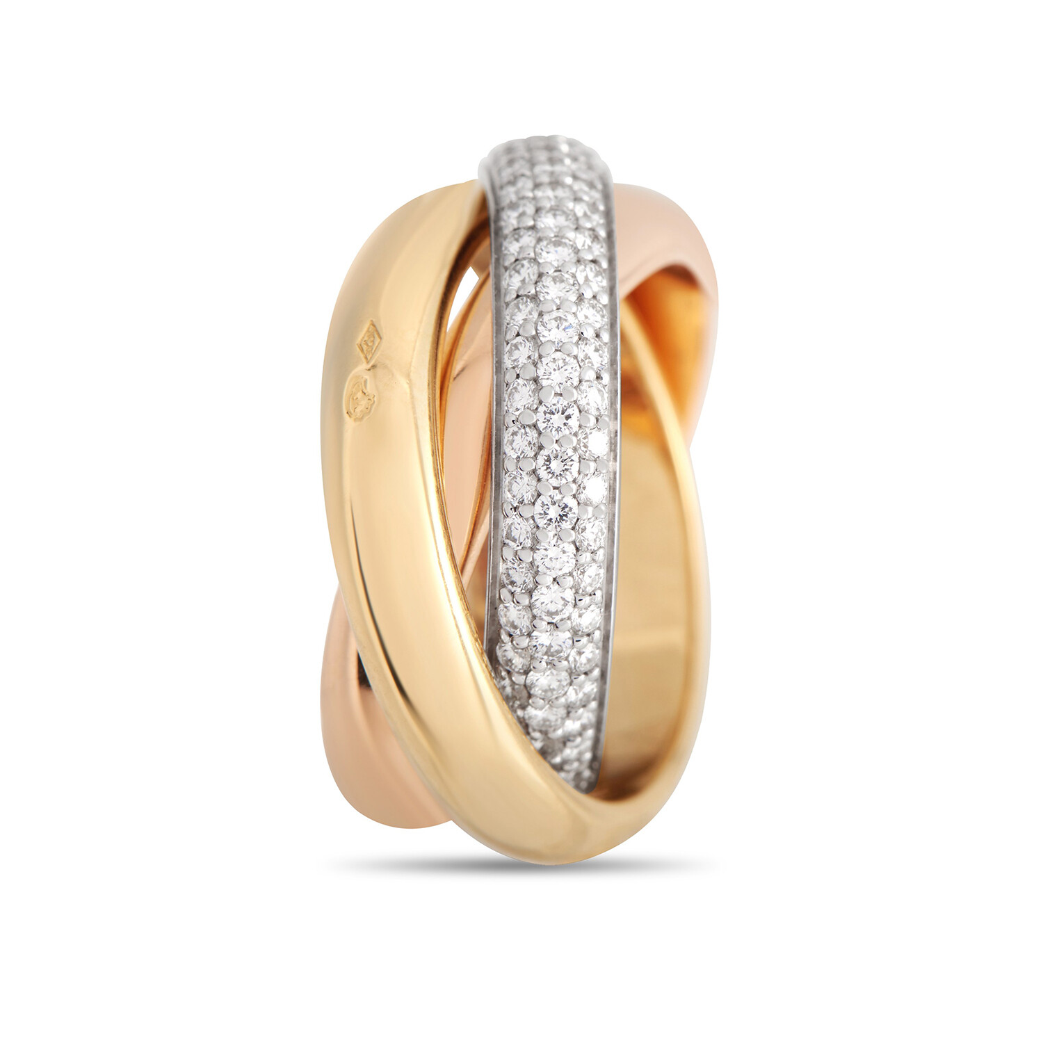 Cartier // Trinity 18K Yellow Gold + 18k White Gold + 18k Rose Gold Diamond Ring // Ring Size: 5 // Estate