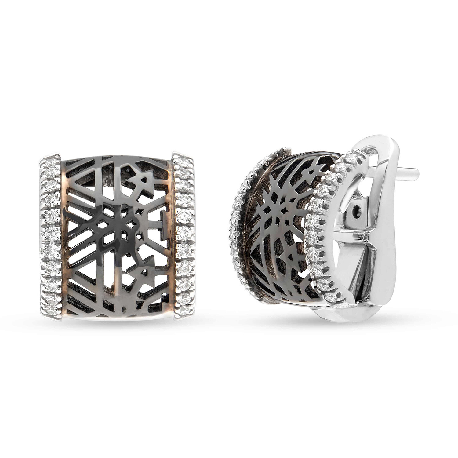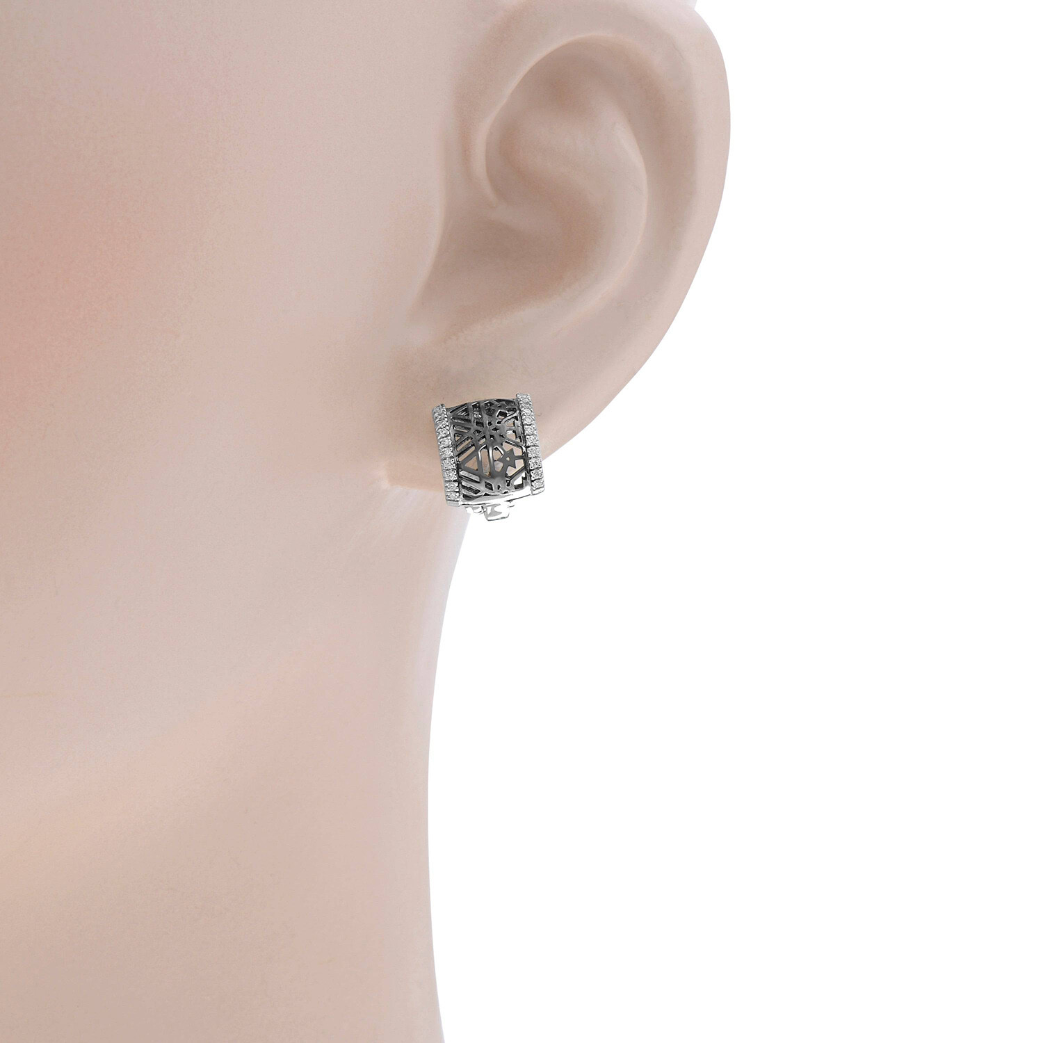 Piero Milano // 18K White Gold + Black Rhodium Diamond Huggie Earrings // New