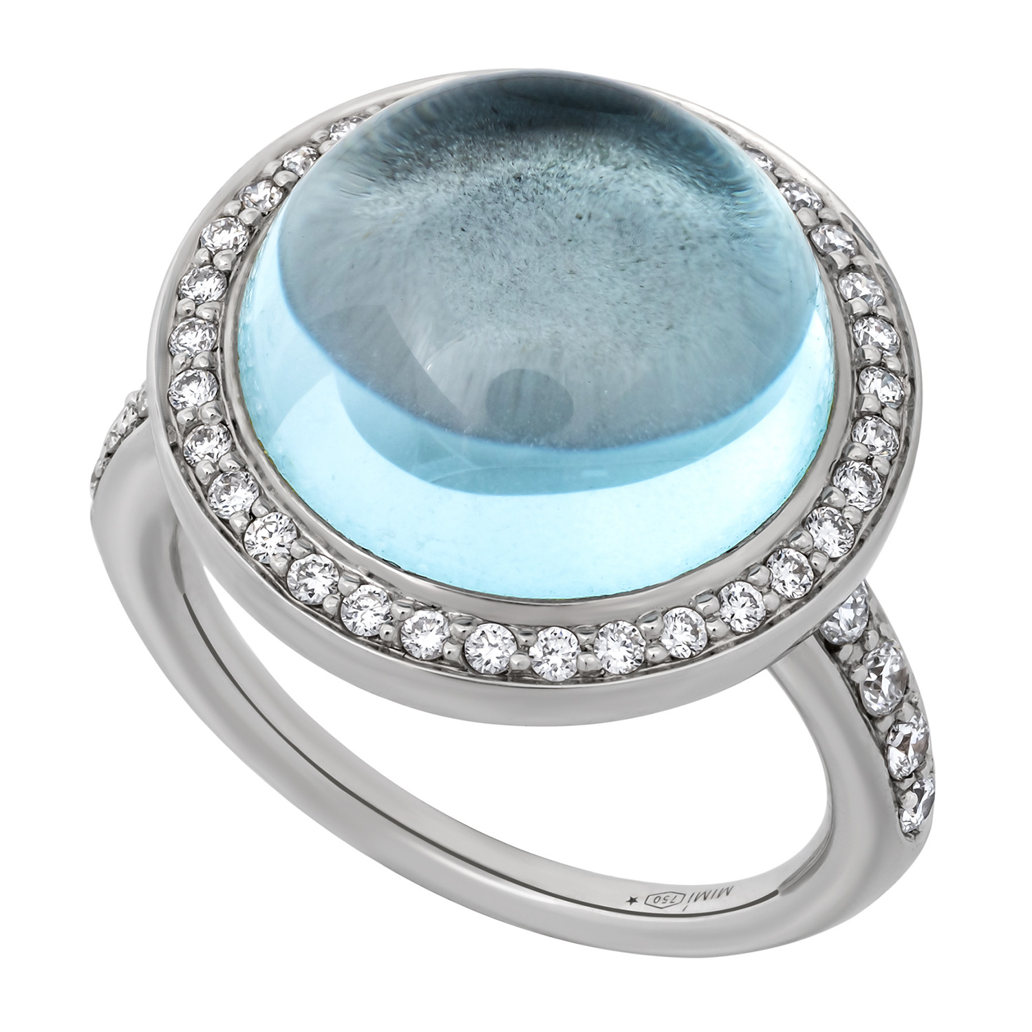 Vintage MiMi Milano 18k White Gold Blue Topaz Diamond Ring // Ring Size: 6.5