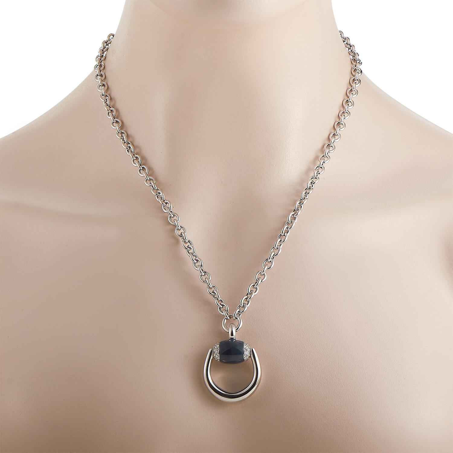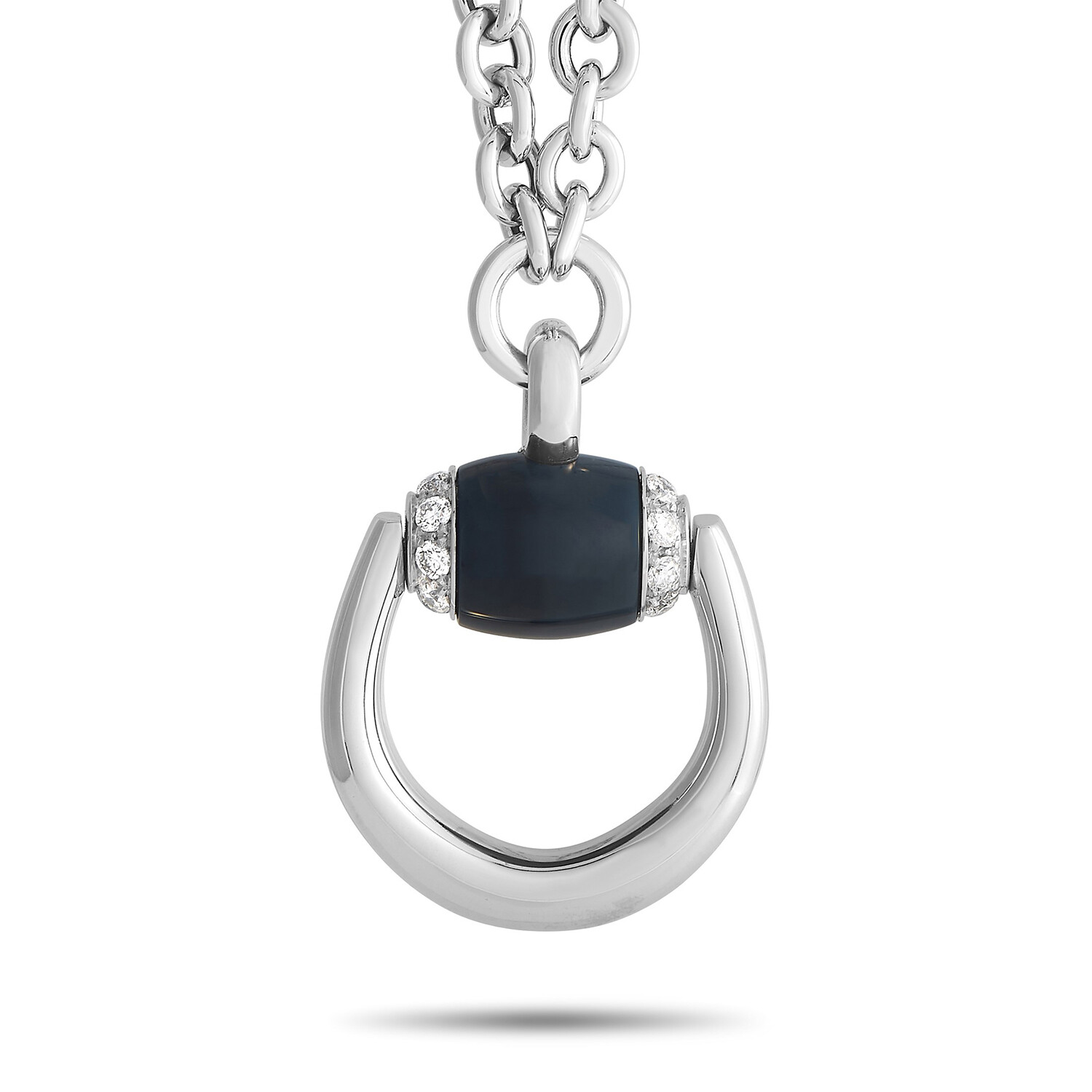 Gucci // Horsebit 18K White Gold Diamond + Onyx Necklace // 20" // Estate