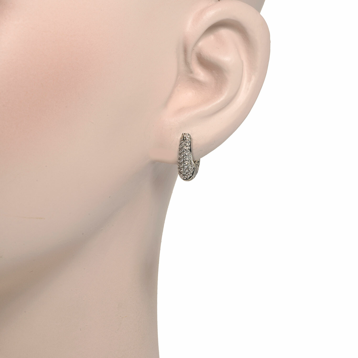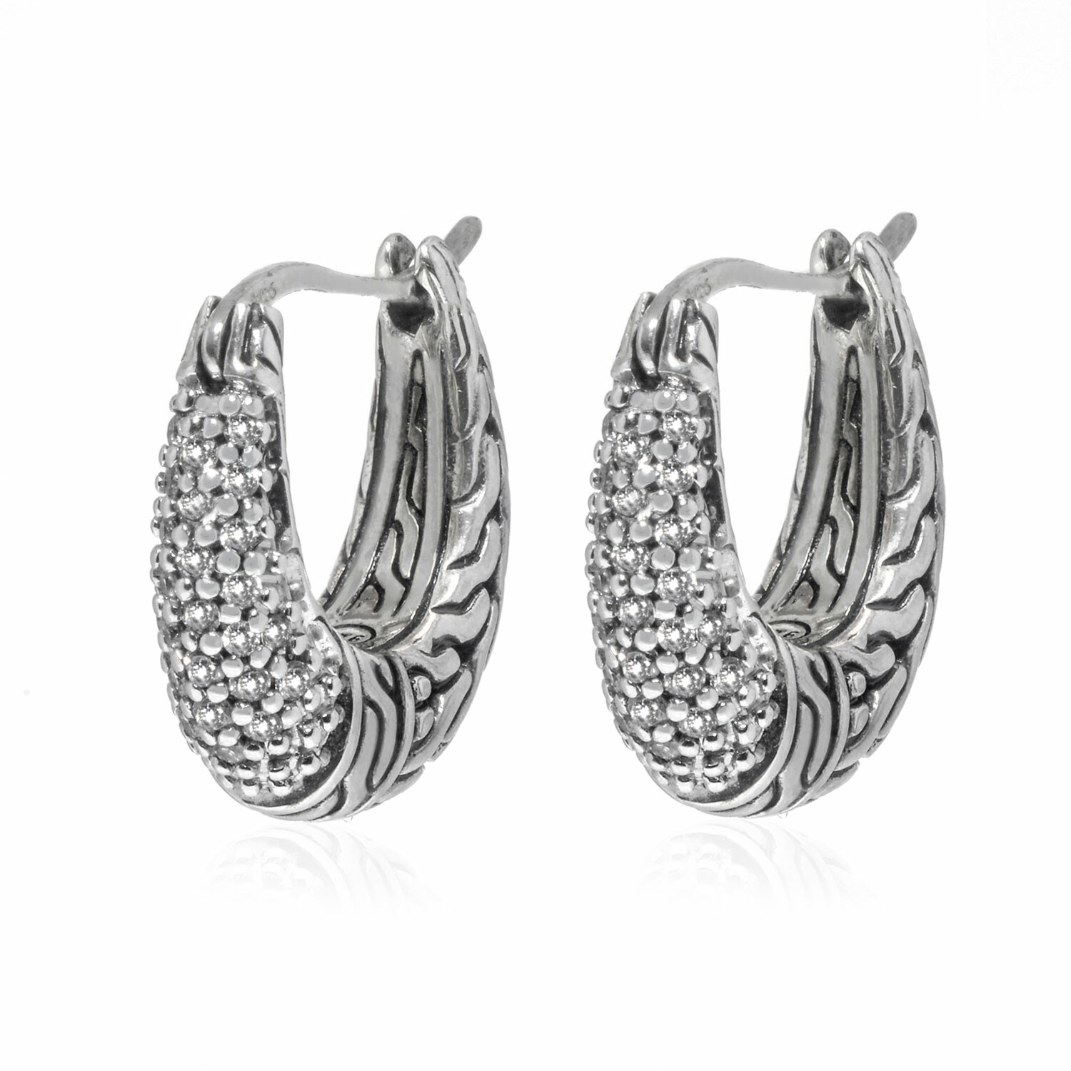 John Hardy // Classic Chain Sterling Silver + Diamond Huggie Hoop Earrings // Store Display
