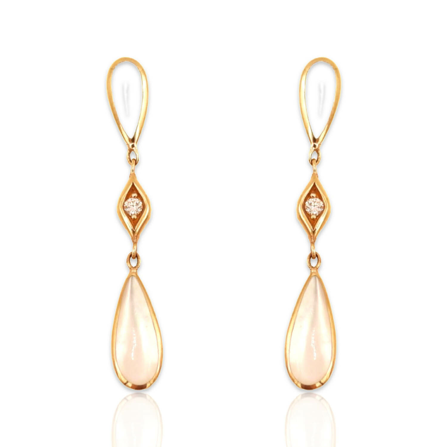 Kabana // 14K Yellow Gold Diamond + White Mother of Pearl Earrings I // Pre-Owned