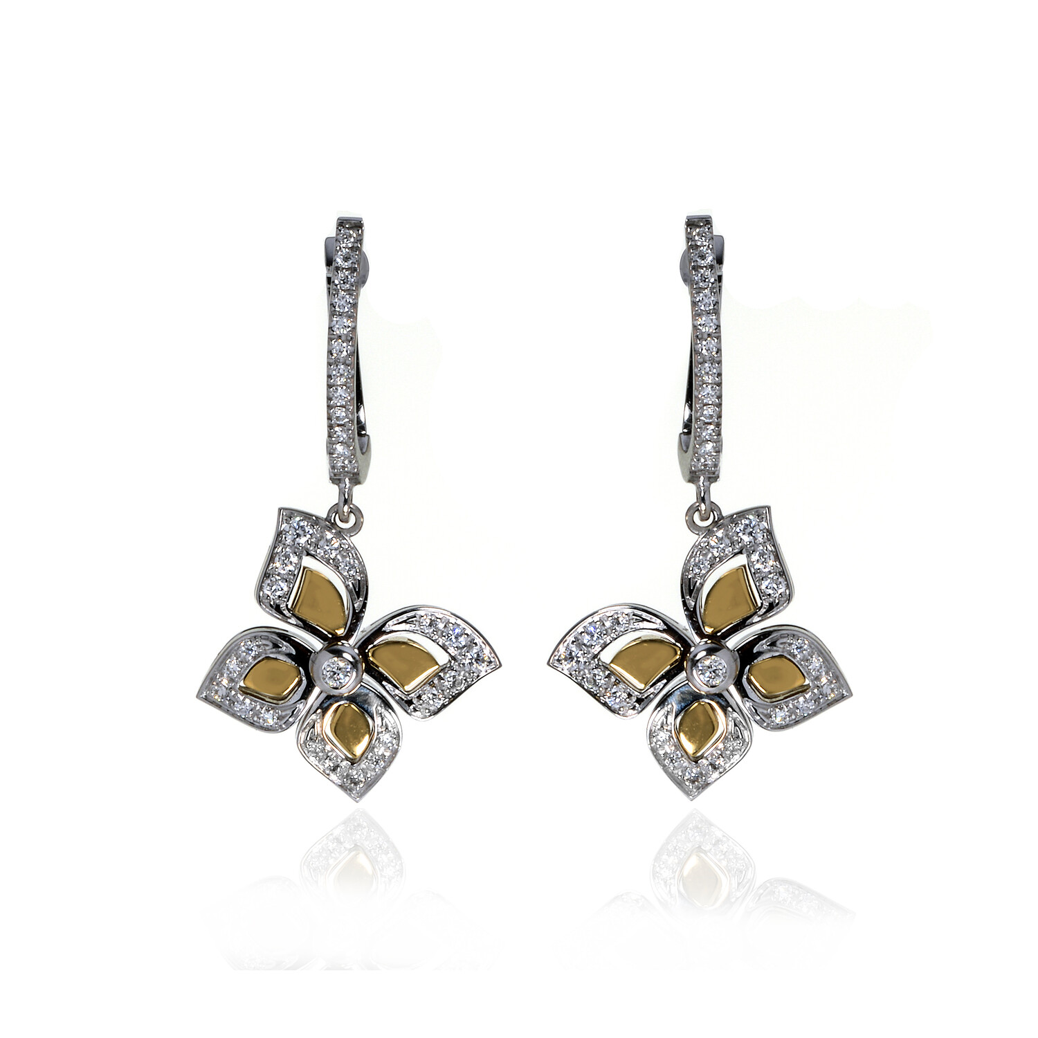 Piero Milano 18K White Gold + 18K Yellow Gold Diamond Drop Earrings // Store Display