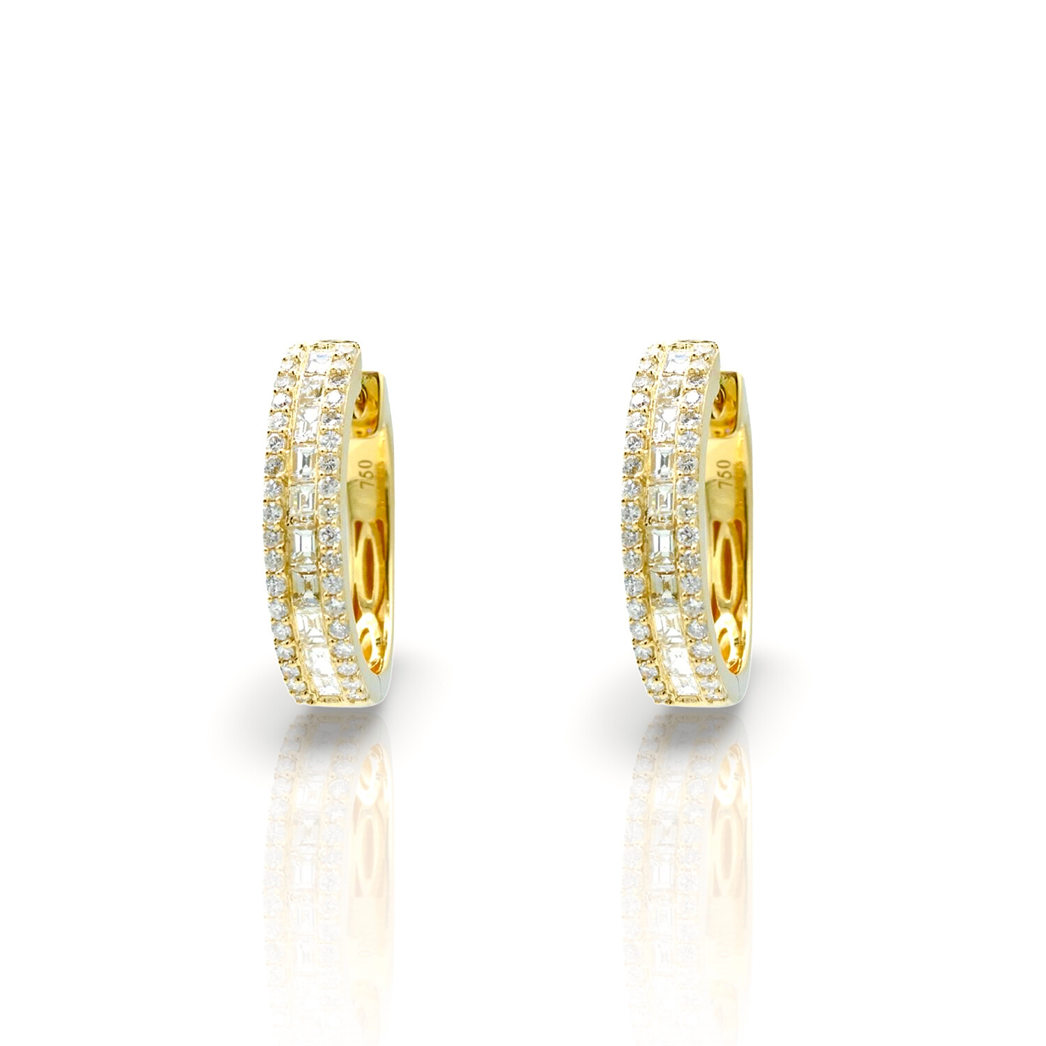 18K Yellow Gold Diamond Hoop Earrings I // New