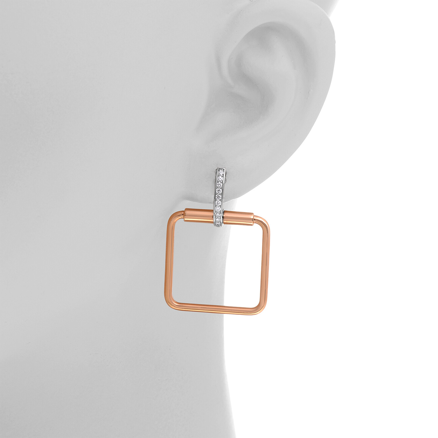 Roberto Coin // Classica Parisienne 18K Rose Gold + 18K White Gold Diamond Earrings // Store Display