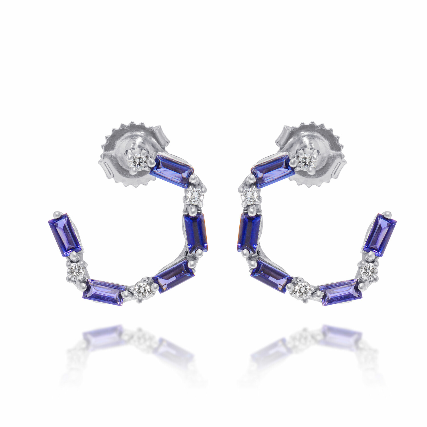 14K White Gold Diamond + Iolite Hoop Earrings // New