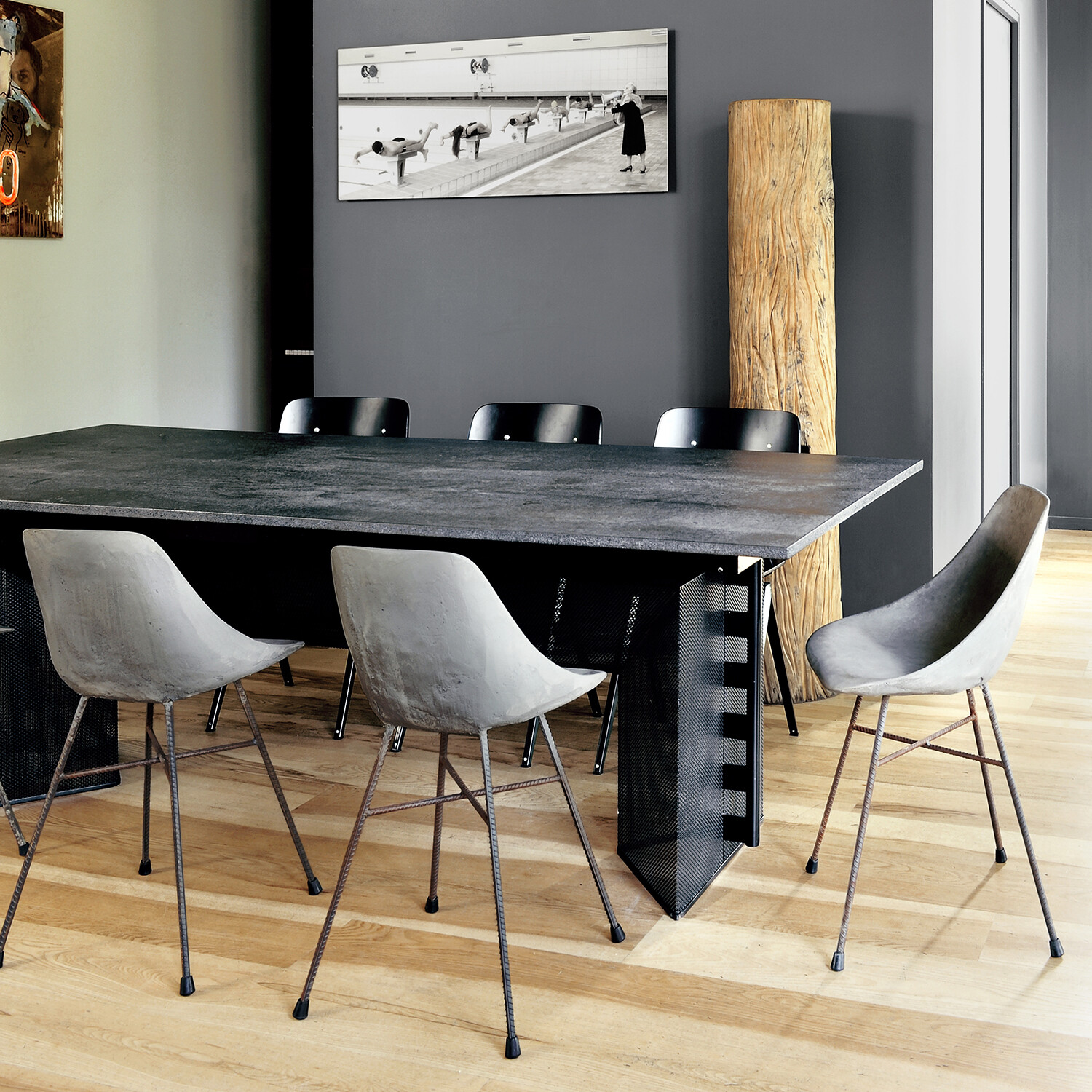 Designed by Henri Lavallard Boget and Julie Legros, the concrete Hauteville chair puts a fresh spin on the iconic resin chairs of the 1950s. Made from concrete, fiberglass, and rebar, this contemporary and undeniably comfortable chair exceeds the sum of its parts. For daily use at the dinner table, or occasional use in a foyer; from the bedroom to the bathroom, concrete goes perfectly anywhere in your house.