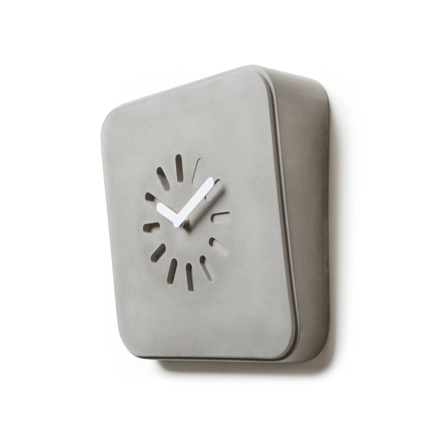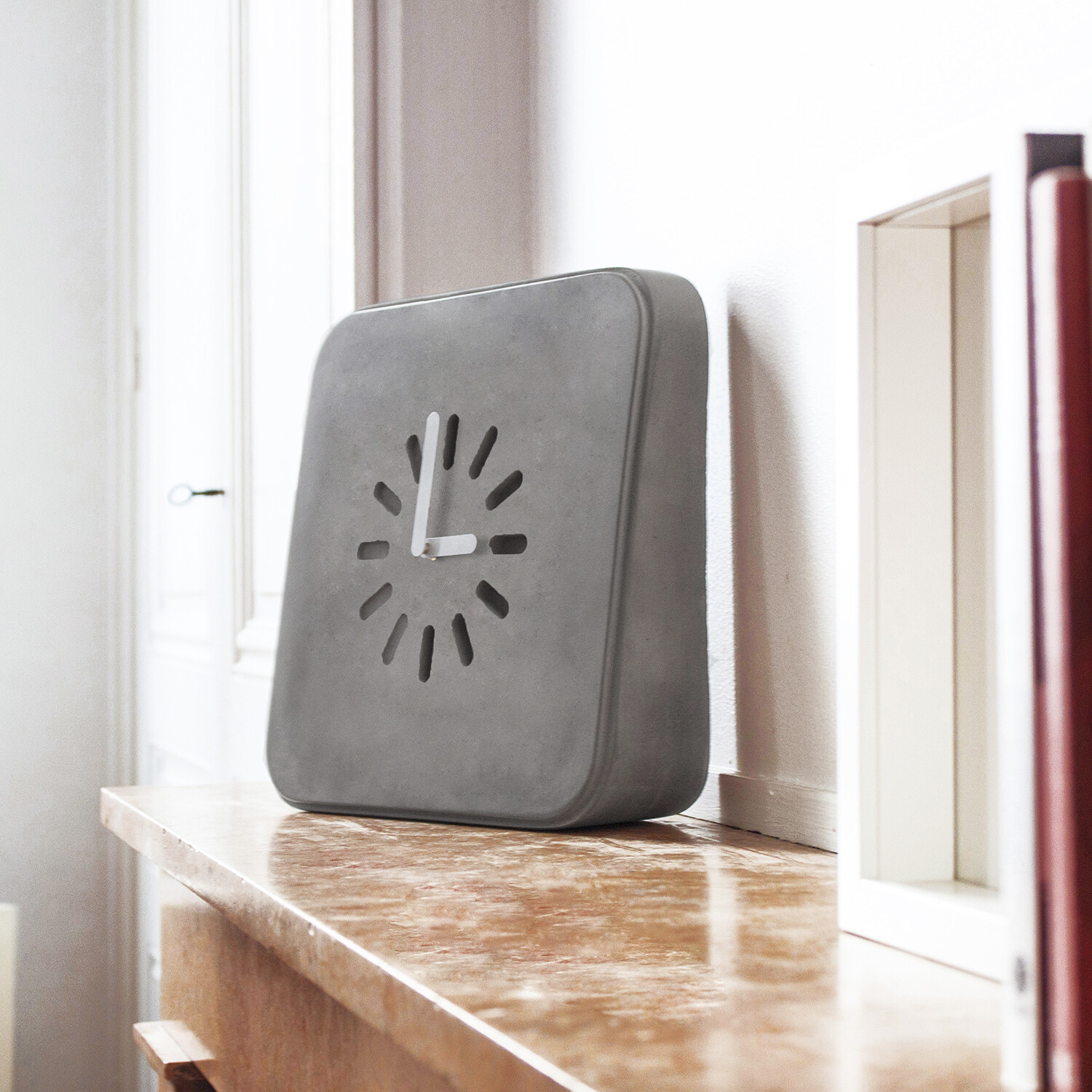 The Concrete Life In Progress clock by designer Bertrand Jayr can just stand on shelf or be hanged on any wall. The integrated fixing system allows a simple and invisible hanging for a very sleek look.