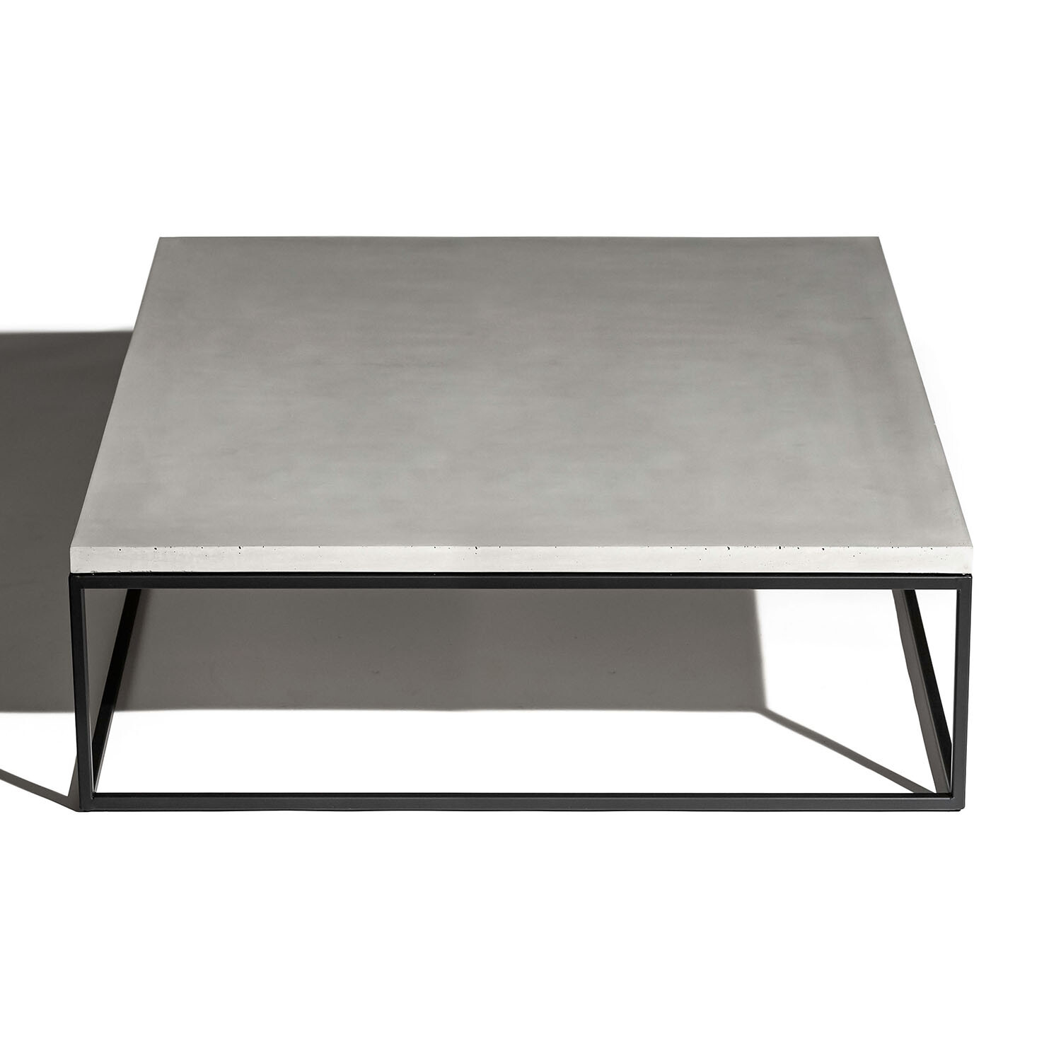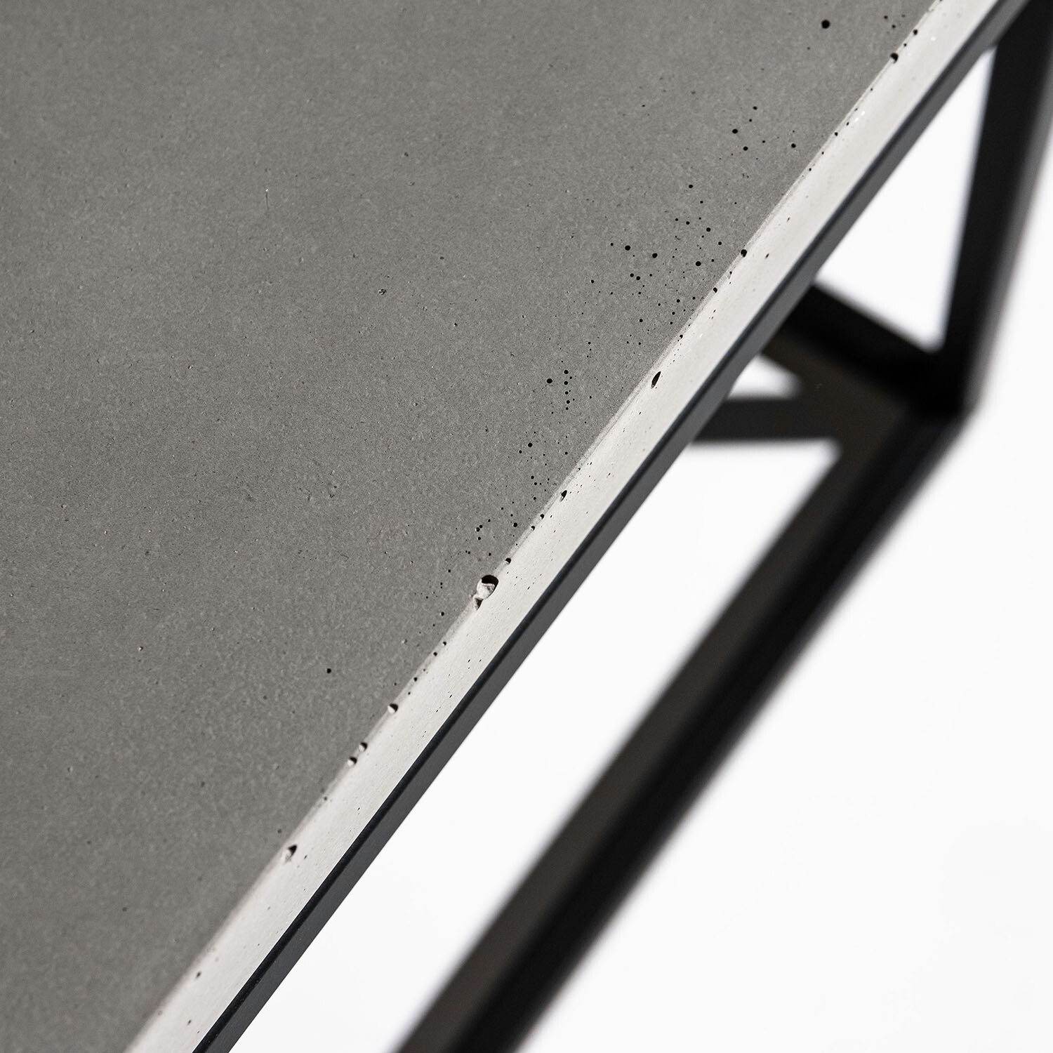 The sober design of this coffee table is enhanced by a concrete top that lends it a unique personality. This black edition Perspective has a metal base covered with a black velvet epoxy paint.