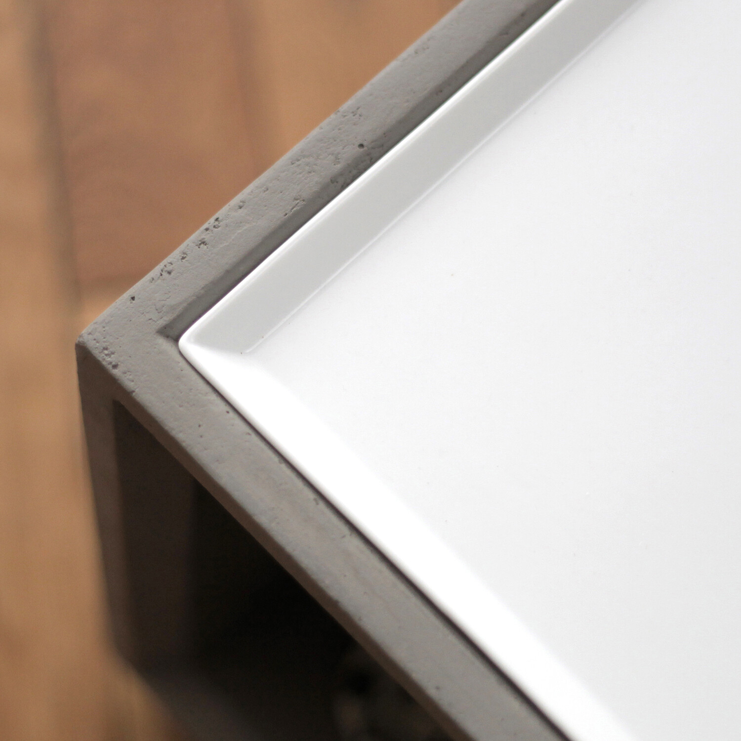 The Plus Porcelain Plate, designed by Betrand Jayr for Lyon Beton, fits perfectly with any of the Plus concrete modular storage units, easily turning the surface of the unit into a suitable and easy to clean table top. Made out of porcelain, the plate will easily soften the appearance of the industrial, cement quality of your storage unit. Use the Porcelain Plate with your concrete modular Plus units and enjoy the versatility.