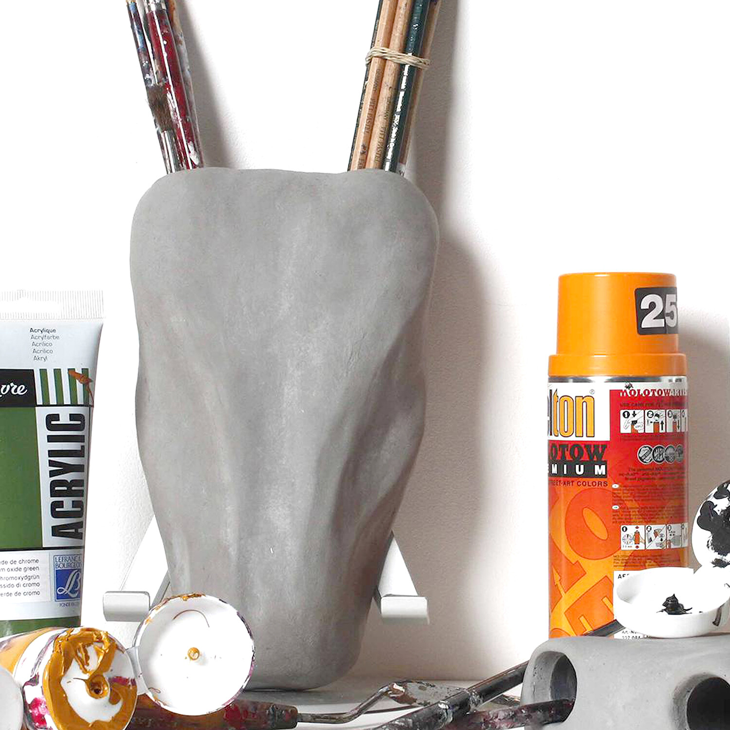 The Concrete Trophy Stem Vase brings a little bit of nature to your empty wall space. Adorn your wall with a prized animal head, molded with limited facial details. The trophy head takes on the silhouette of a stag, a ram, or any hoofed animal depending on whatever you decided to use to create antlers.