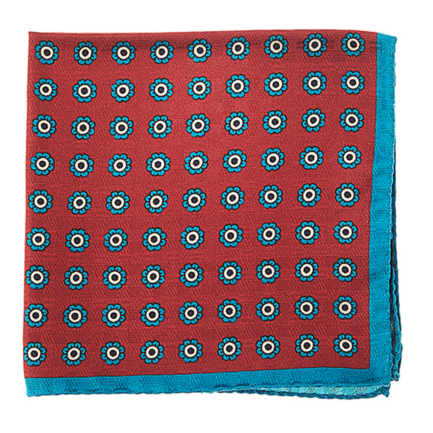 M. Andrews // Silk Pocket Square // Red + Turquoise