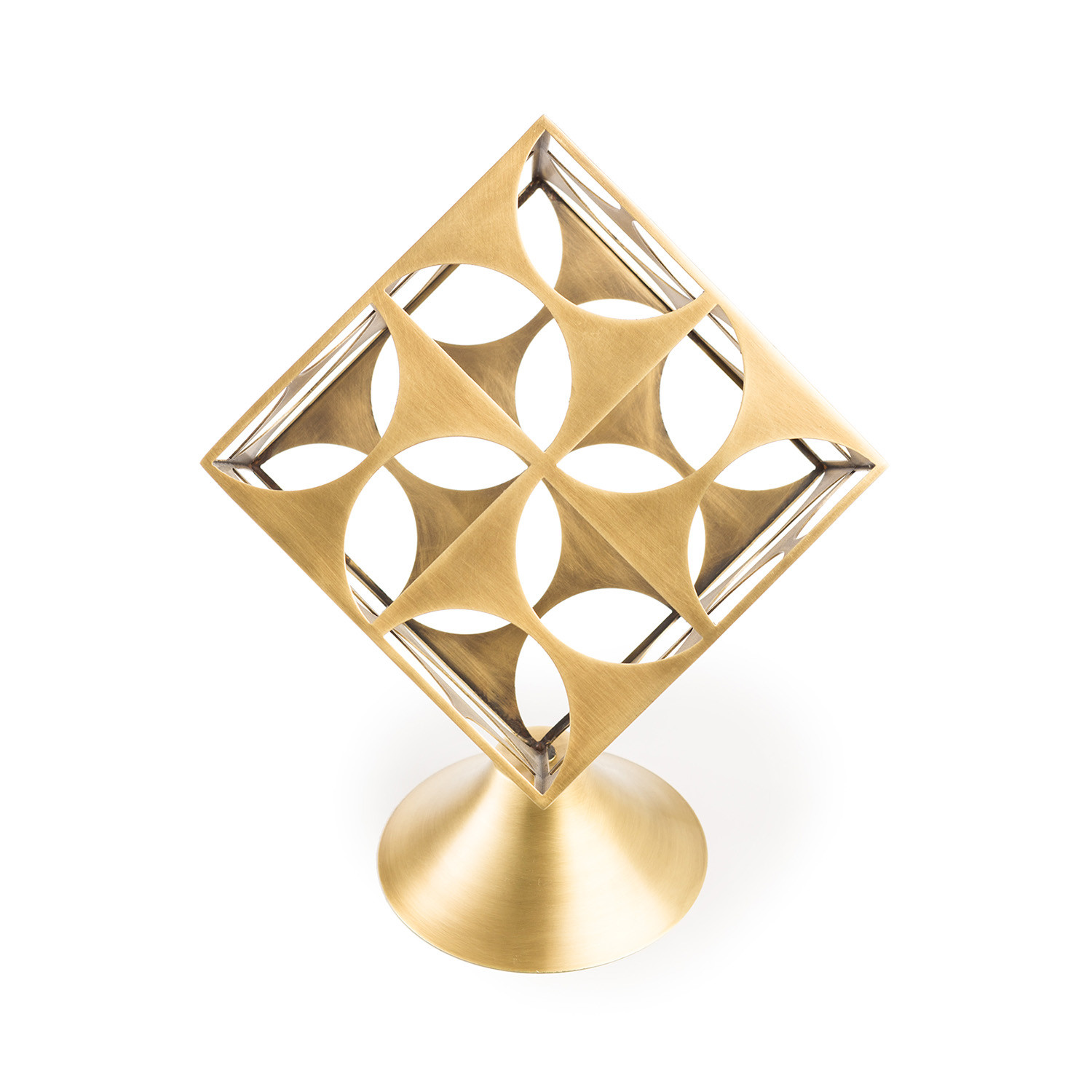 Oh Axis... you're the piece our hearts all rotate around. Unique, hand-welded, and totally eye-catching, the Axis Cube is sure to become the focal point of any room. The rich burnished brass finish and the dramatic design of this piece combine to create a statement to remember.