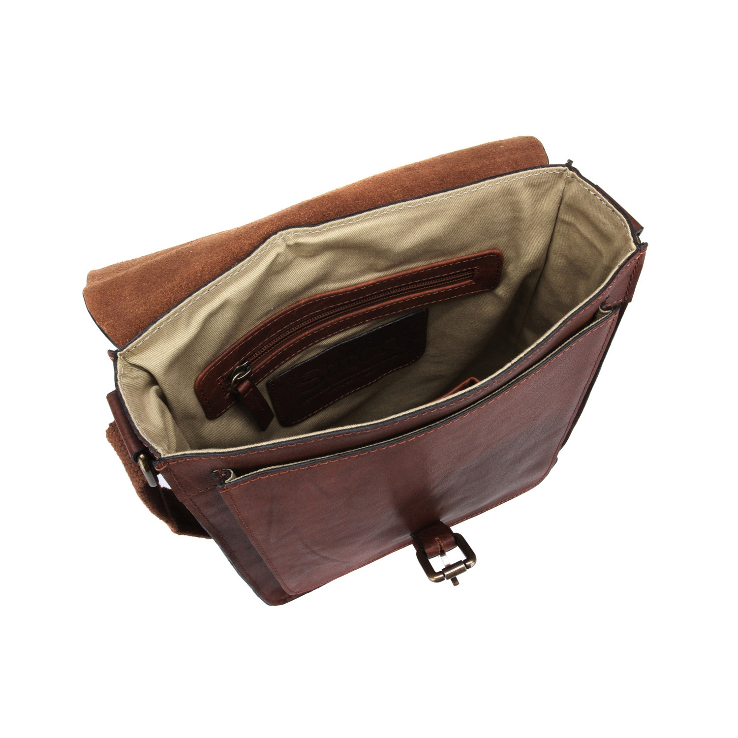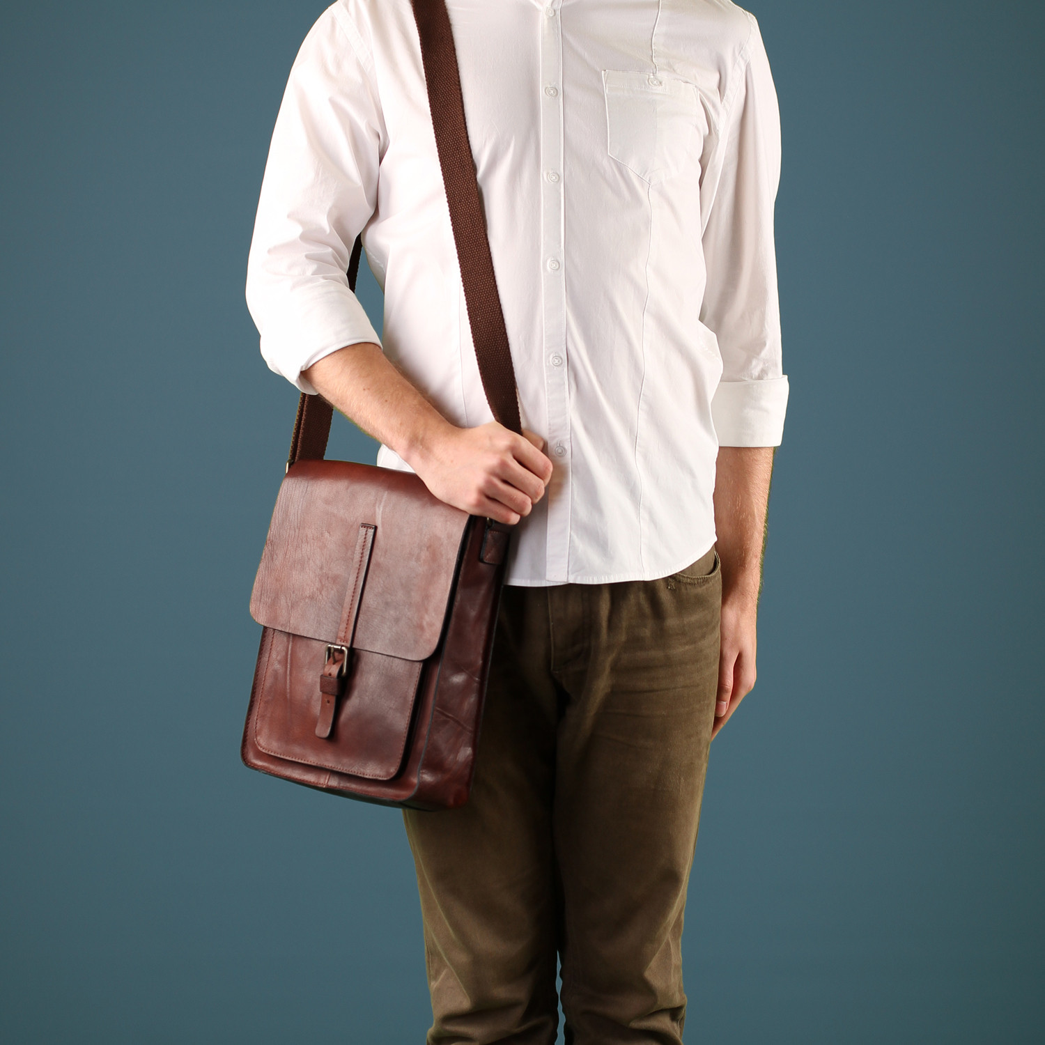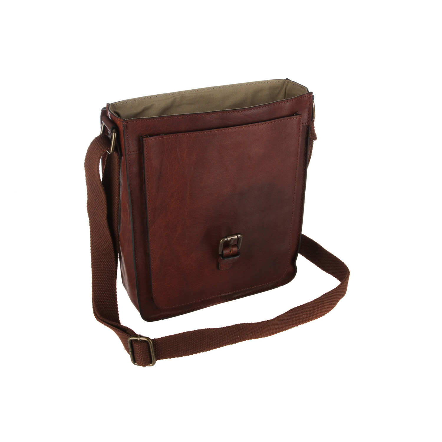 Made from hand-crafted natural leather with a handsome treacle brown color, the Bourne satchel from Stitch has a vintage character all its own. The bag opens with a genuine buckle fastening to a fully lined interior, ideal for a tablet or magazine. Complete with a heavy-duty canvas shoulder strap, the Bourne is an ideal on-the-go accessory.