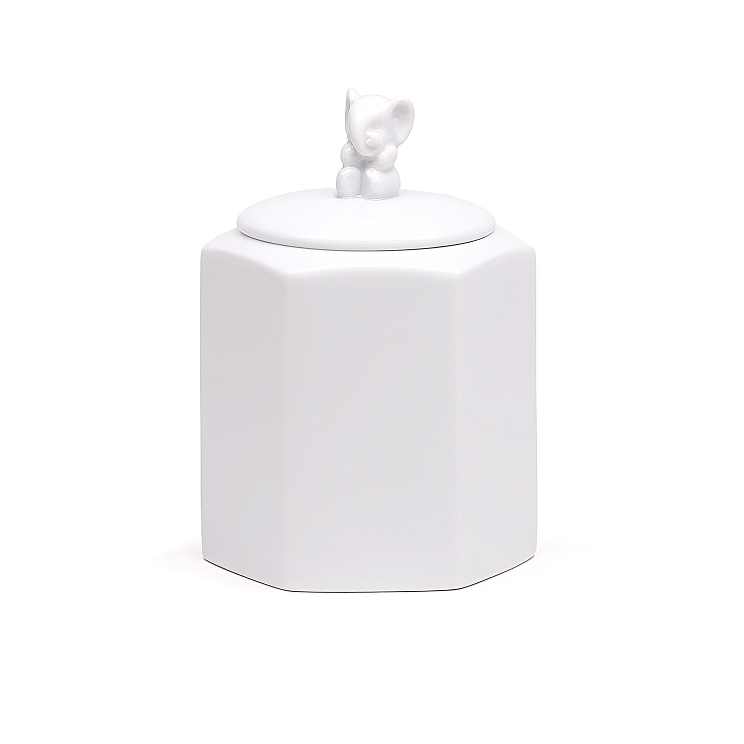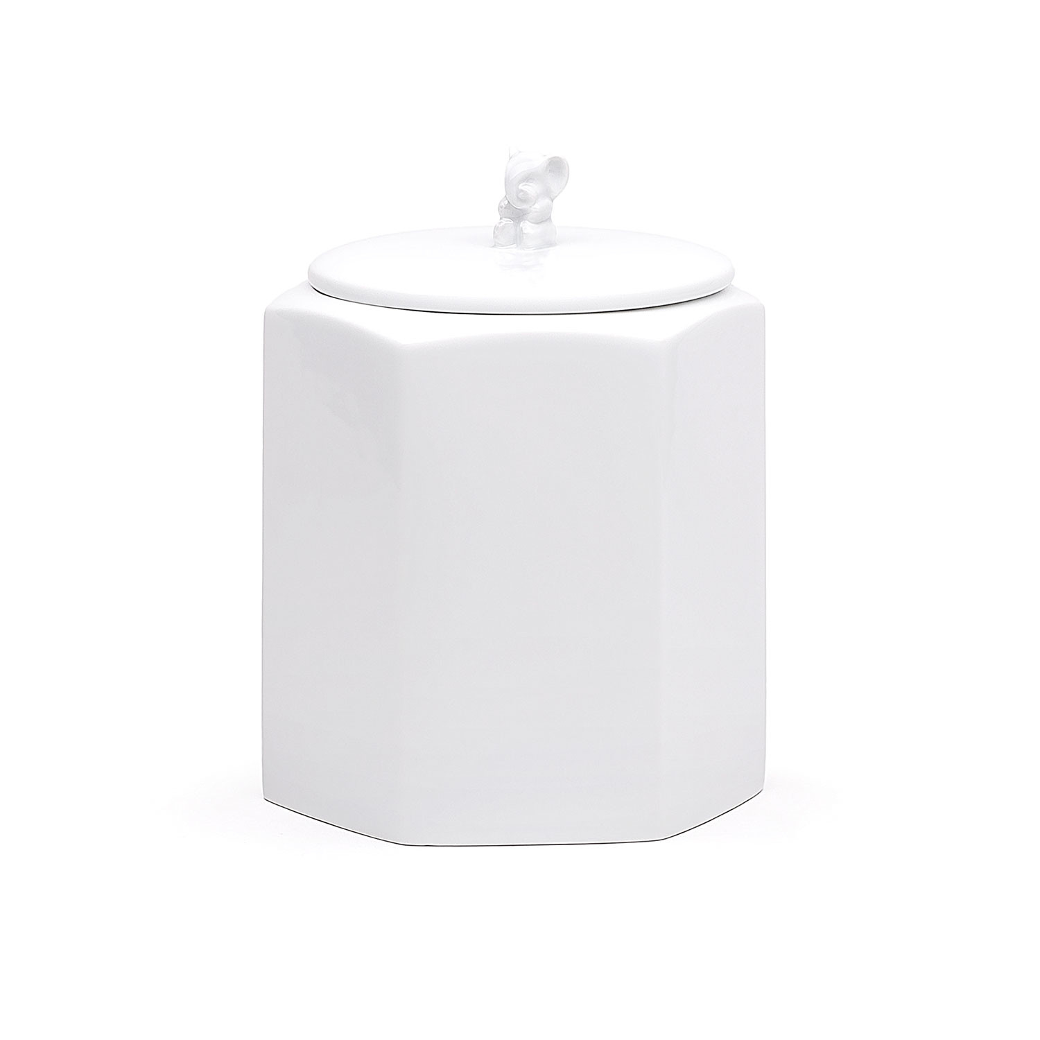 Exquisitely executed in fine porcelain, this small, hexagonal storage jar is ideal for storing tea or other goodies. Guarded on the lid by a small dragon, these unique jars add a decorative touch anywhere in your home.