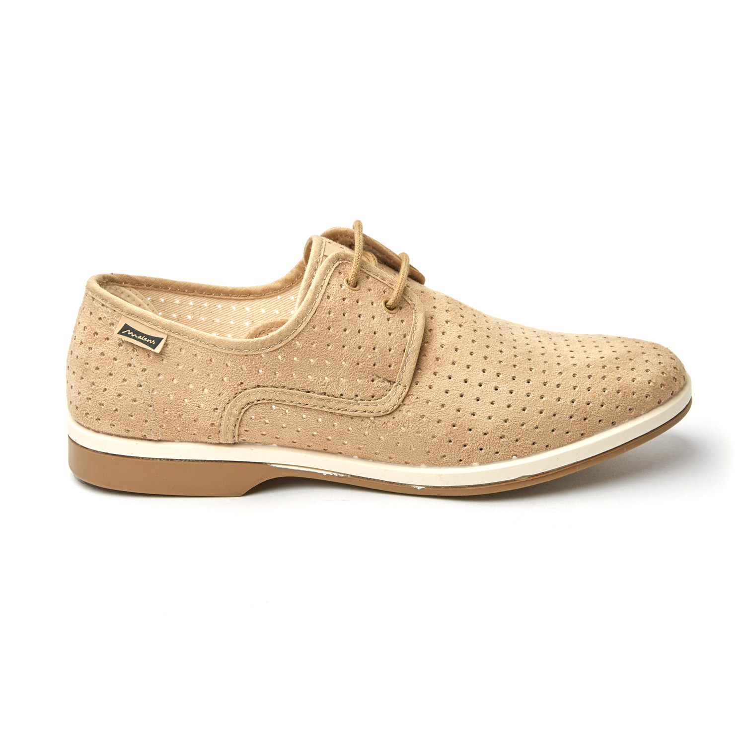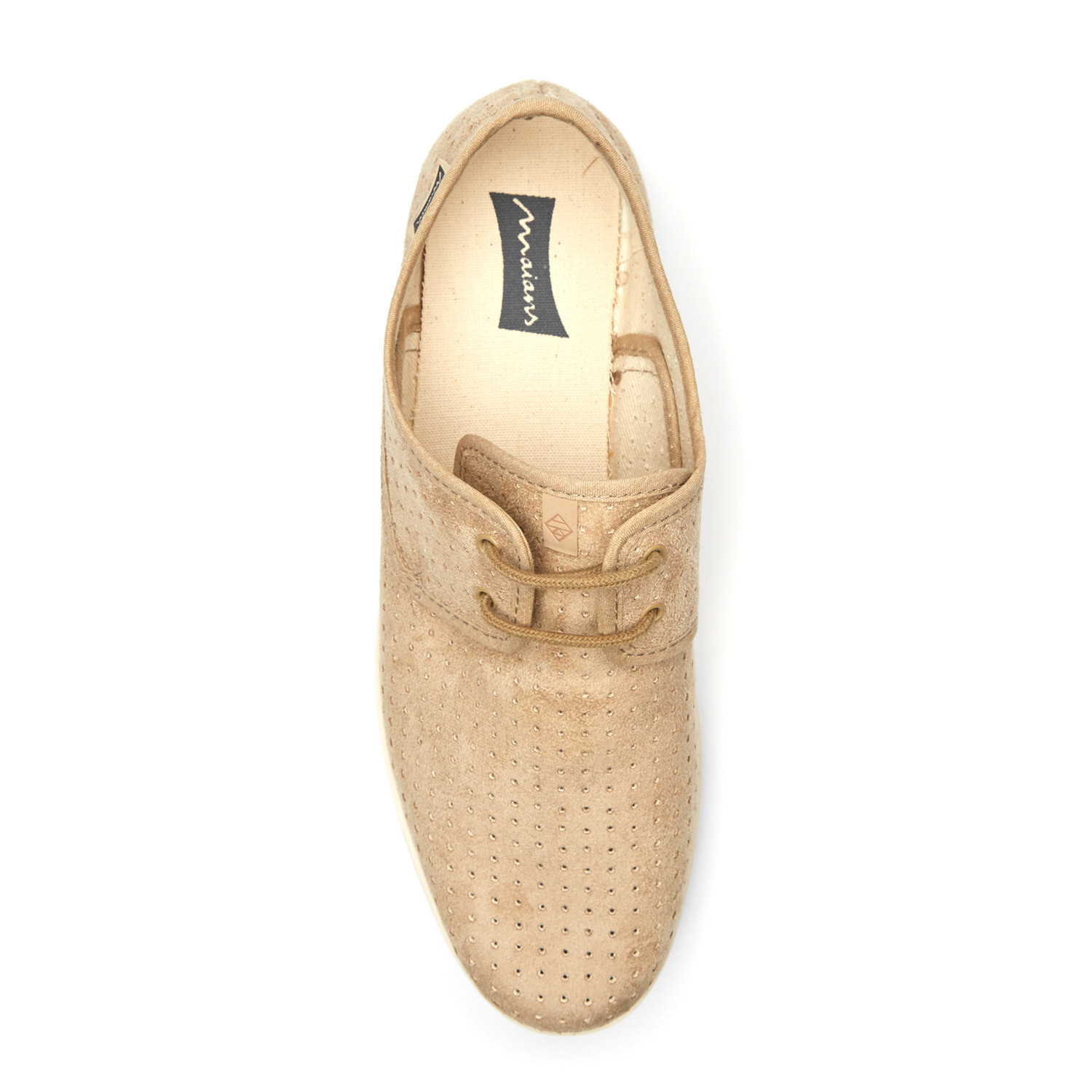 Calisto, a timeless classics of natural suede, comes in a very new version featuring unique perforated cut-out pattern. Each pair is handcrafted by traditional shoemakers in La Rioja, Spain.