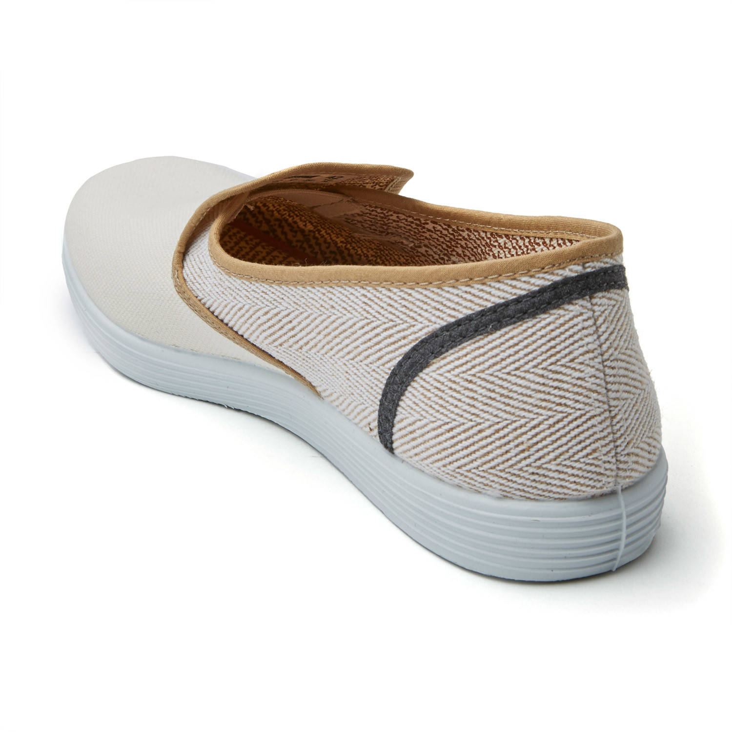 Rufino Combi is a new slip-on for men, made of 100% natural canvas. Elegant and versatile, the perfect choice to slip on and go. Each pair is handcrafted by traditional shoemakers in La Rioja, Spain.
