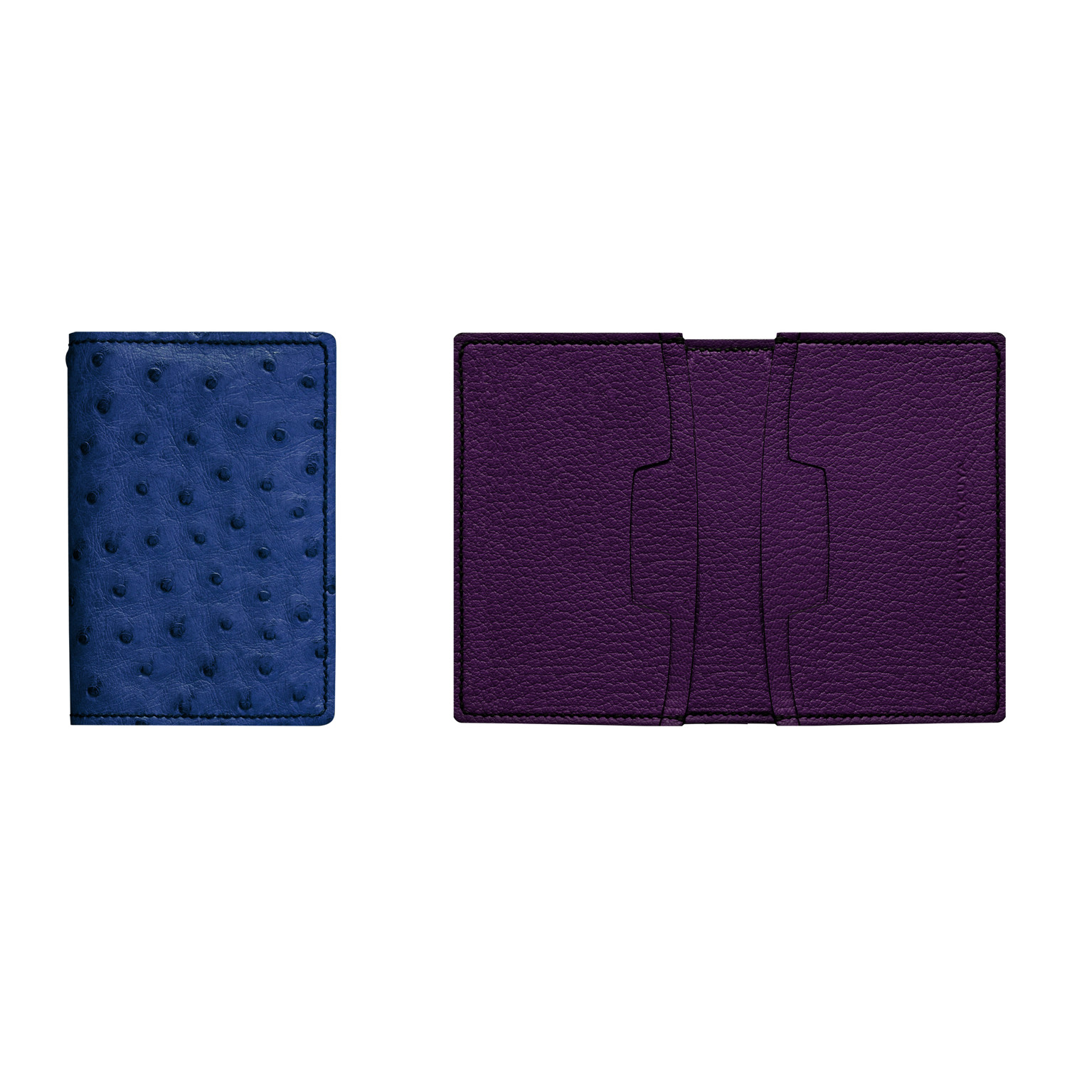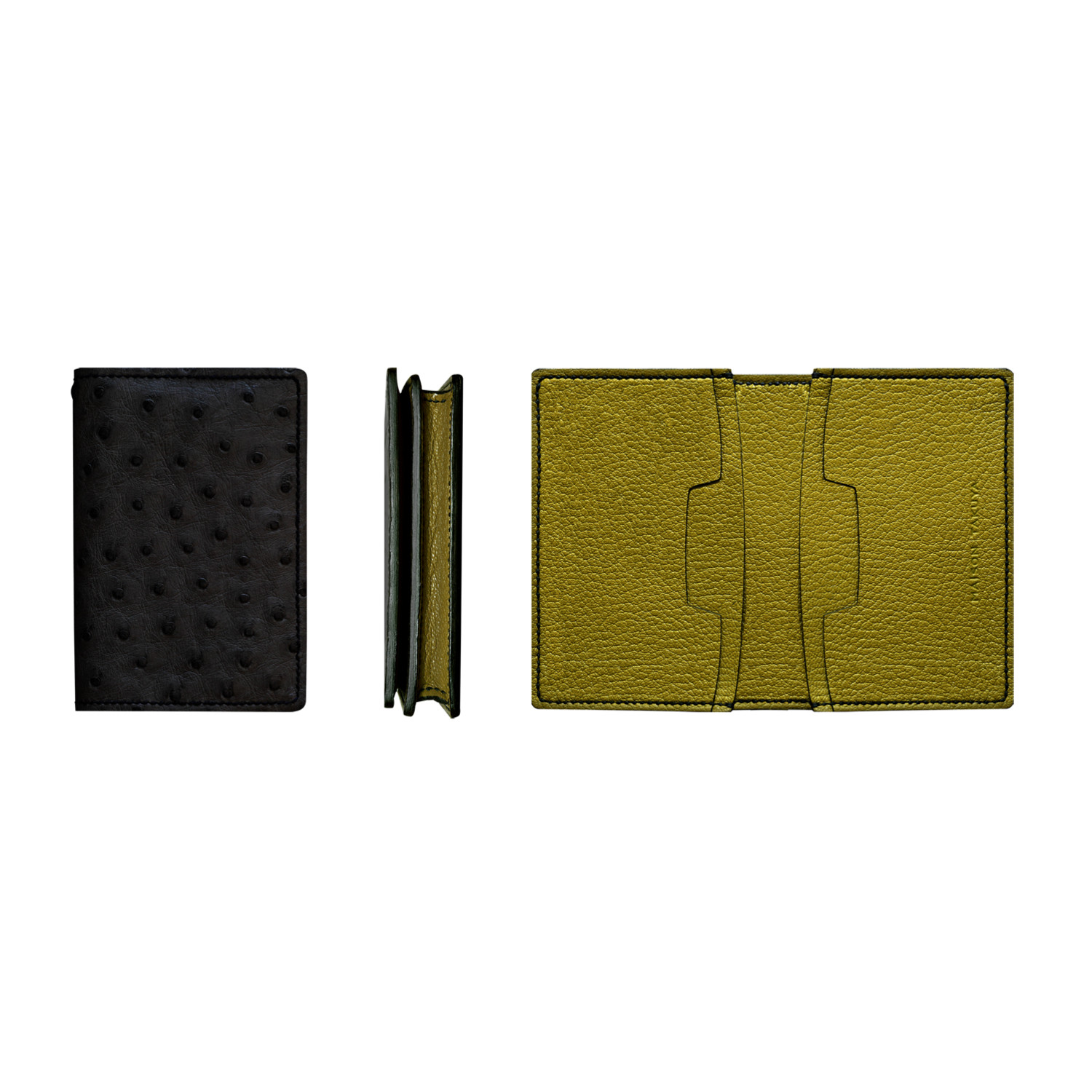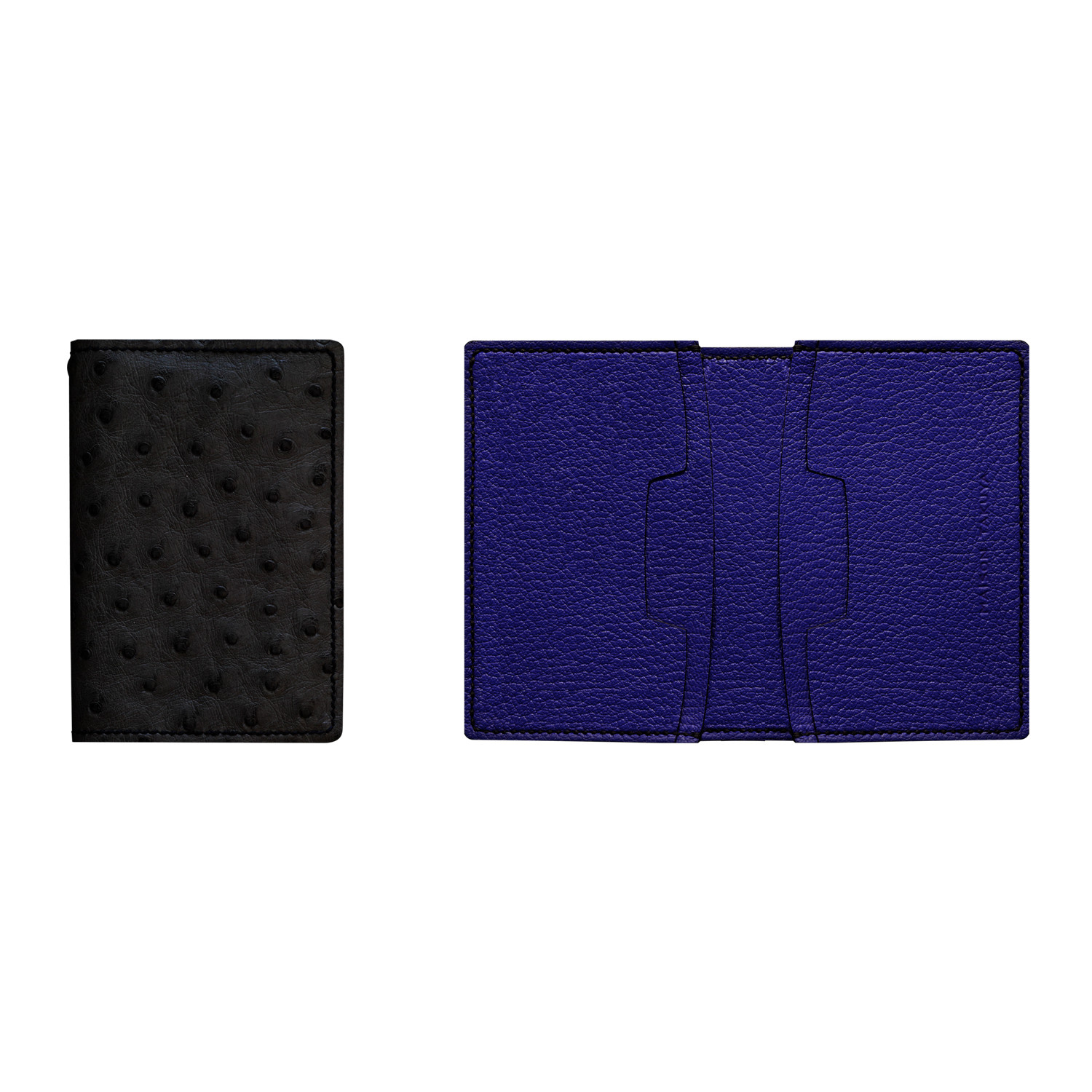Maison Takuya's Business Card Pouch is a luxurious folding leather pocket with an ostrich exterior and ultra-soft goat leather interior. Maison Takuya only uses the highest grade Australian skins, tanned with a semi-matte finish that allows a rich patina to develop over time. This design is ideal for stylish business professionals who want an attractive way to keep their business cards organized, either tucked away in a suit pocket or easily tossed in a travel bag.