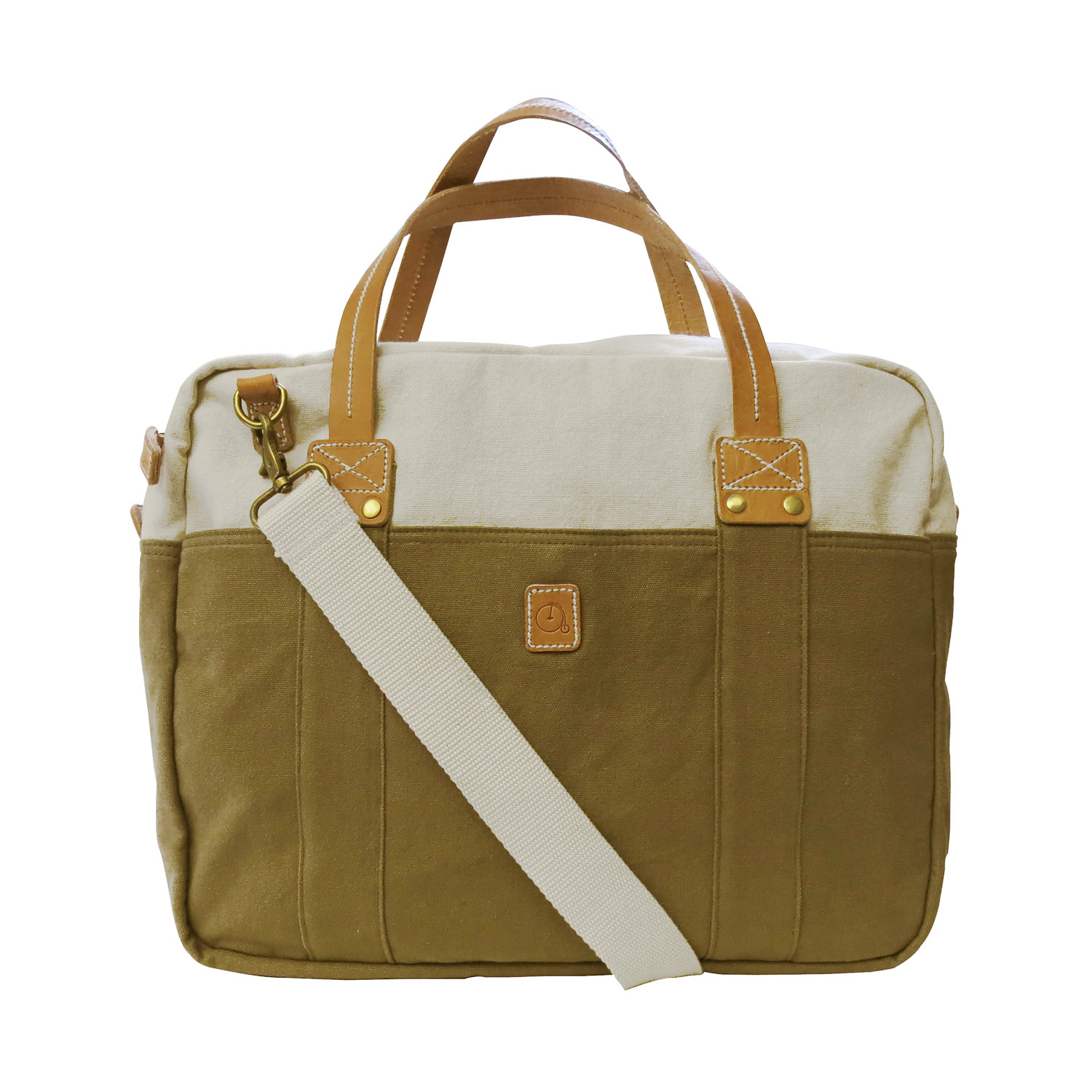 Maker & Company's natural dyed and washed Canvas Messenger Bag comes with several interior and exterior pockets for all sorts of stuff. Antique Brass hardware and a heavy cow hide handle finish off this ideal bag.