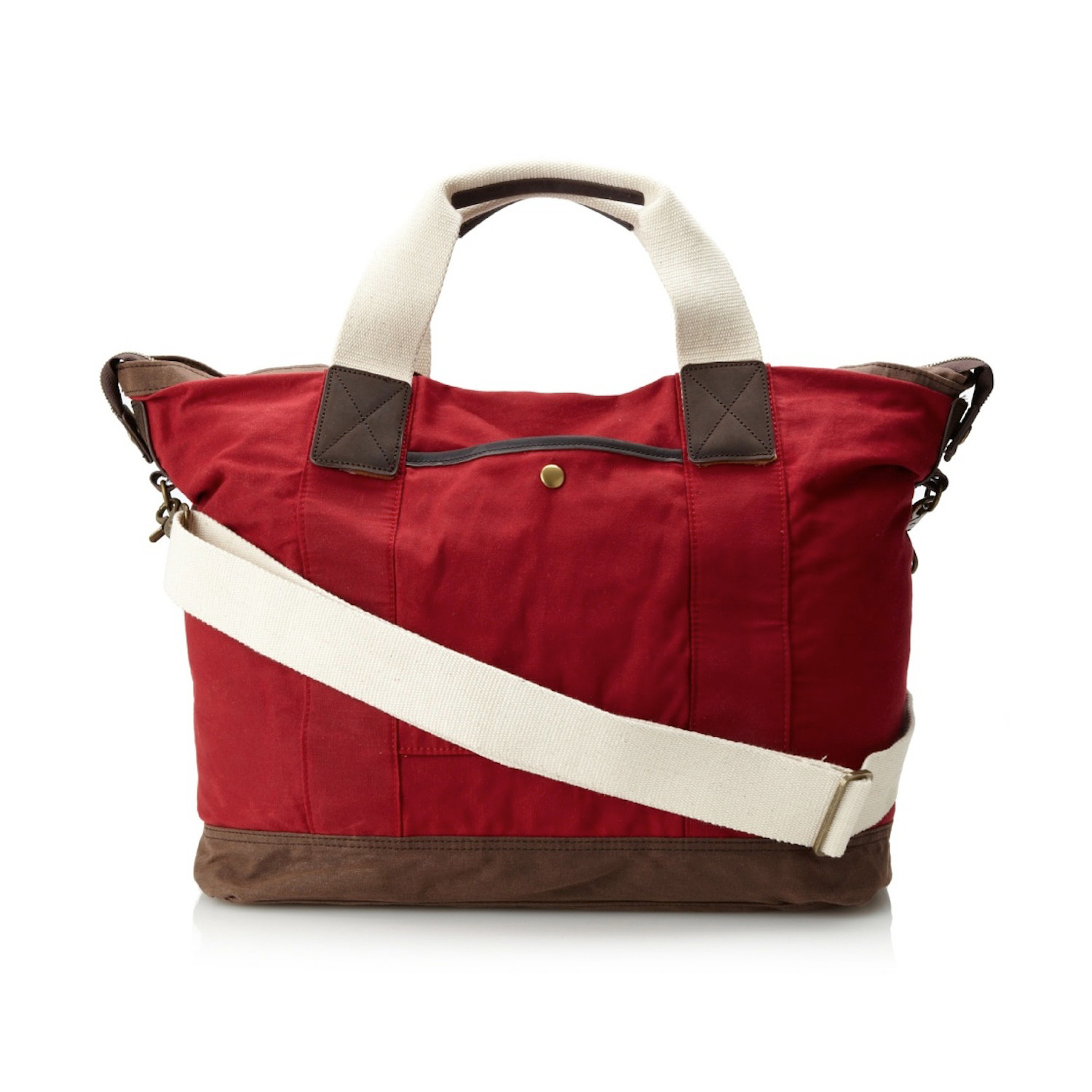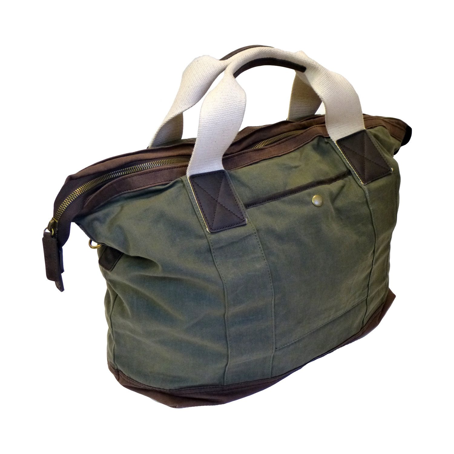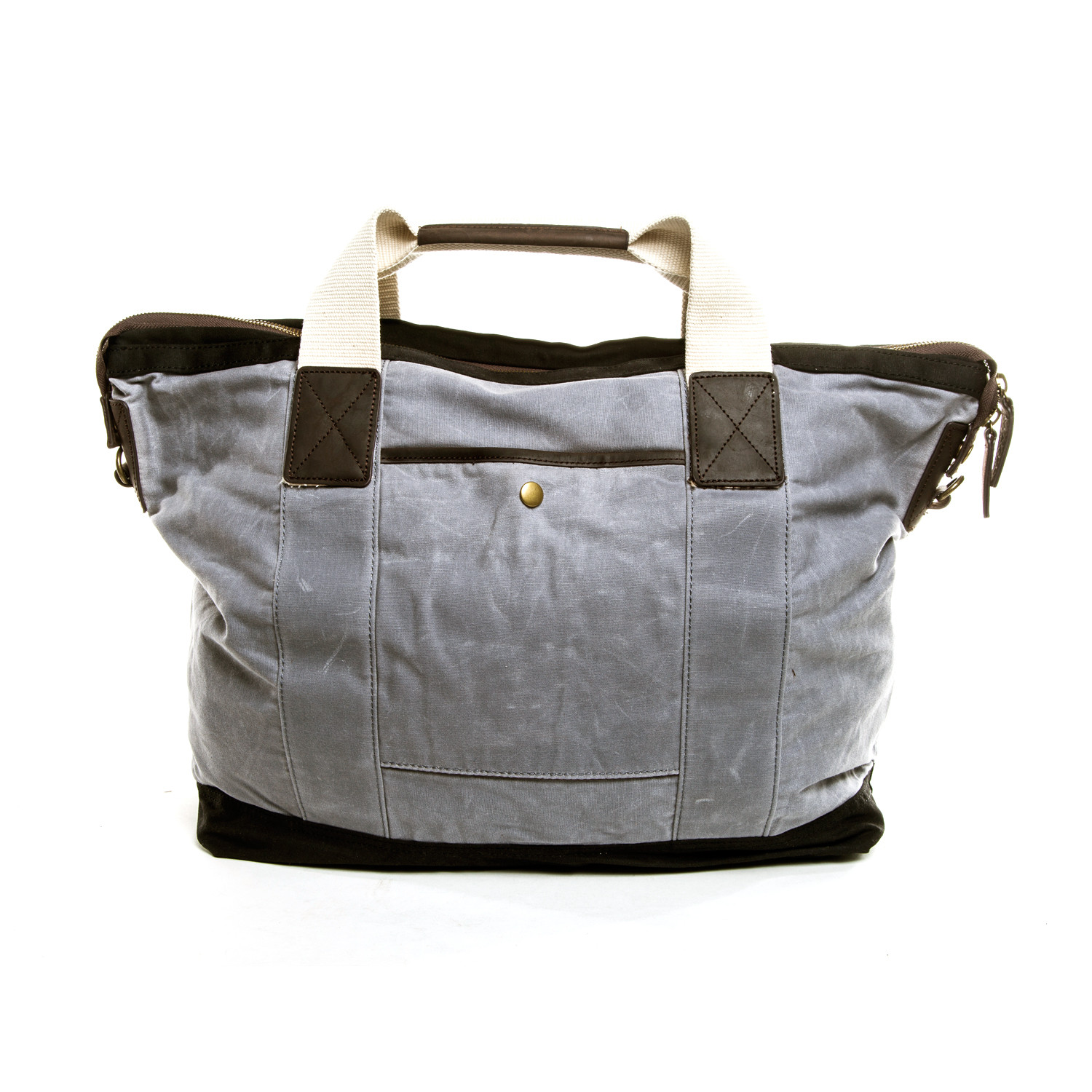 Maker & Company's natural dyed and waxed Distressed Leather + Waxed Canvas Tote comes with several interior and exterior pockets for all sorts of stuff. Antique Brass hardware and a heavy cow hide handle finish off this ideal tote.