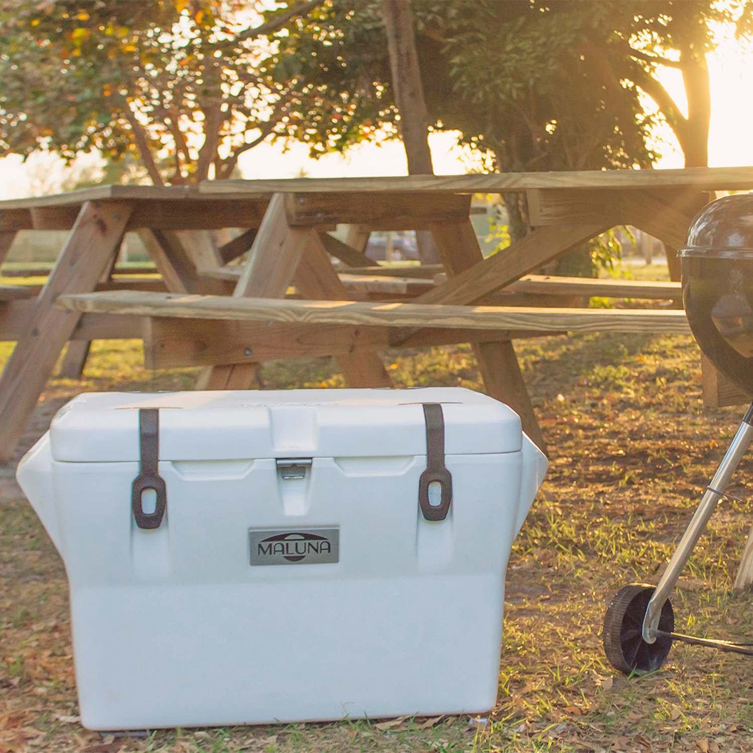 The Maluna Unhinged 70 combines versatility and mobility with unbeatable performance. With a patented "unhinged" design, tapered walls, and premium seal, this cooler holds ice for 20% longer than most. A Thermometer Drain Plug even displays the temperature inside the cooler so you can make sure your food is safely stored and your beverages are perfectly chilled.
