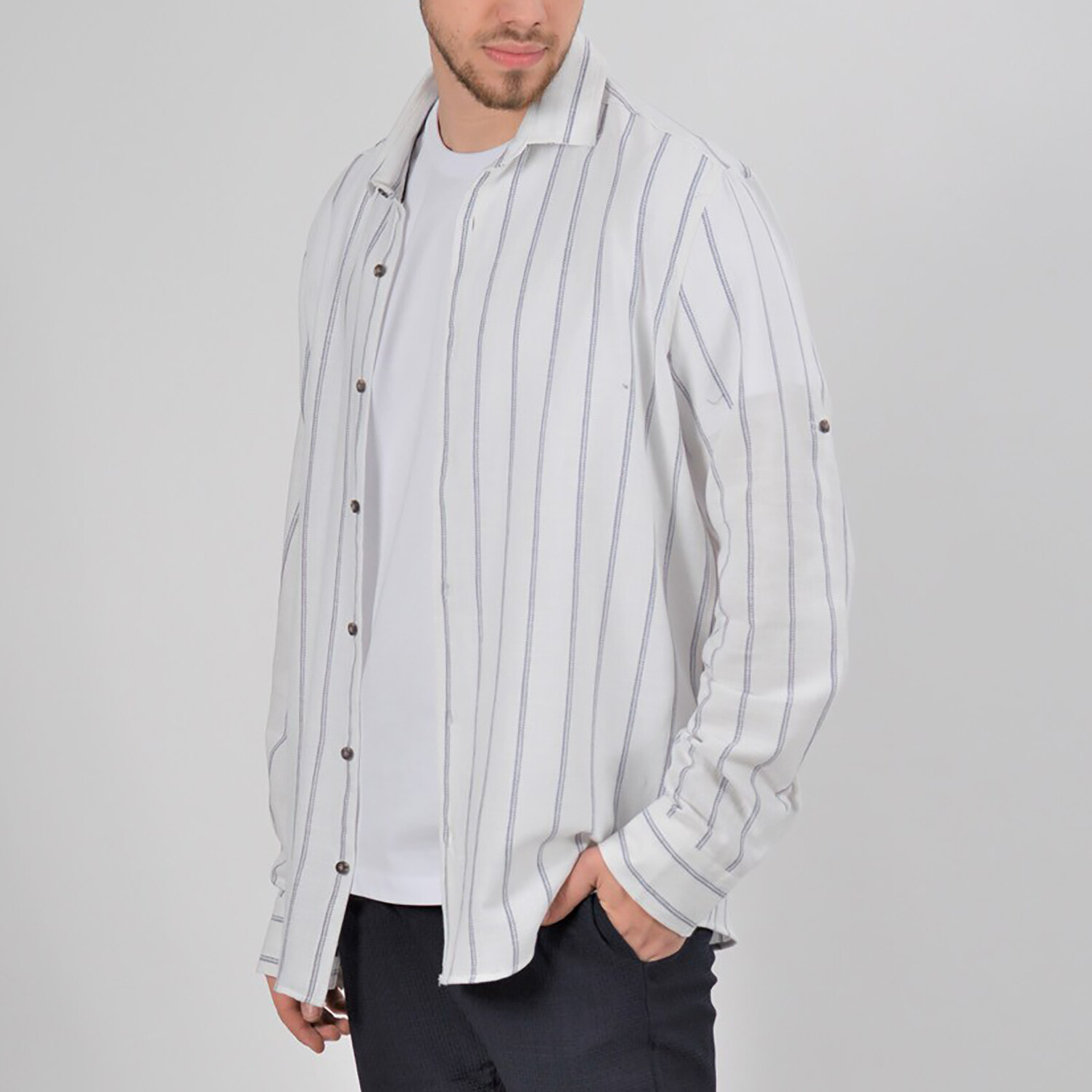 Jason Long Sleeve Button Down Shirt // White + Navy Blue