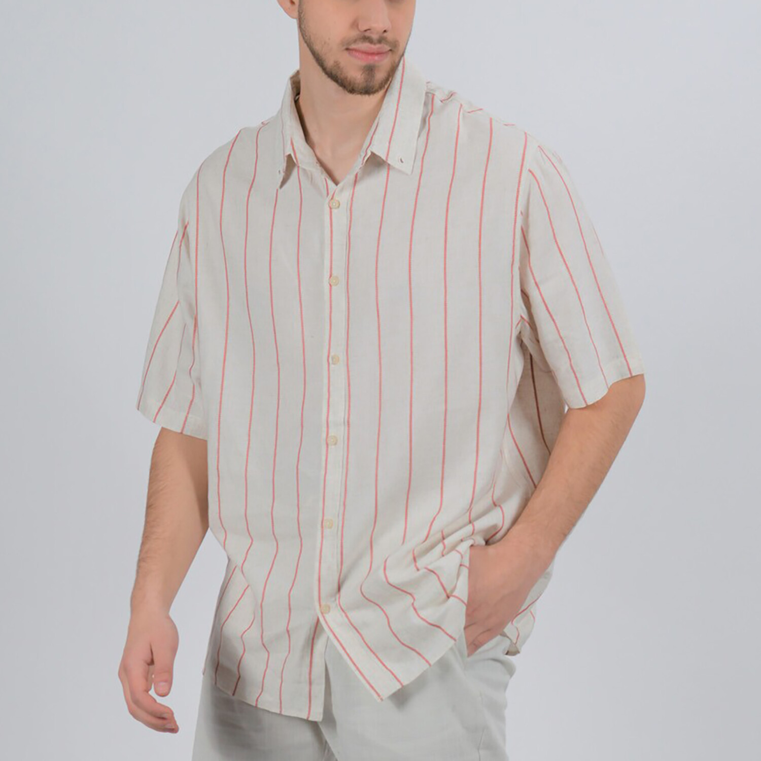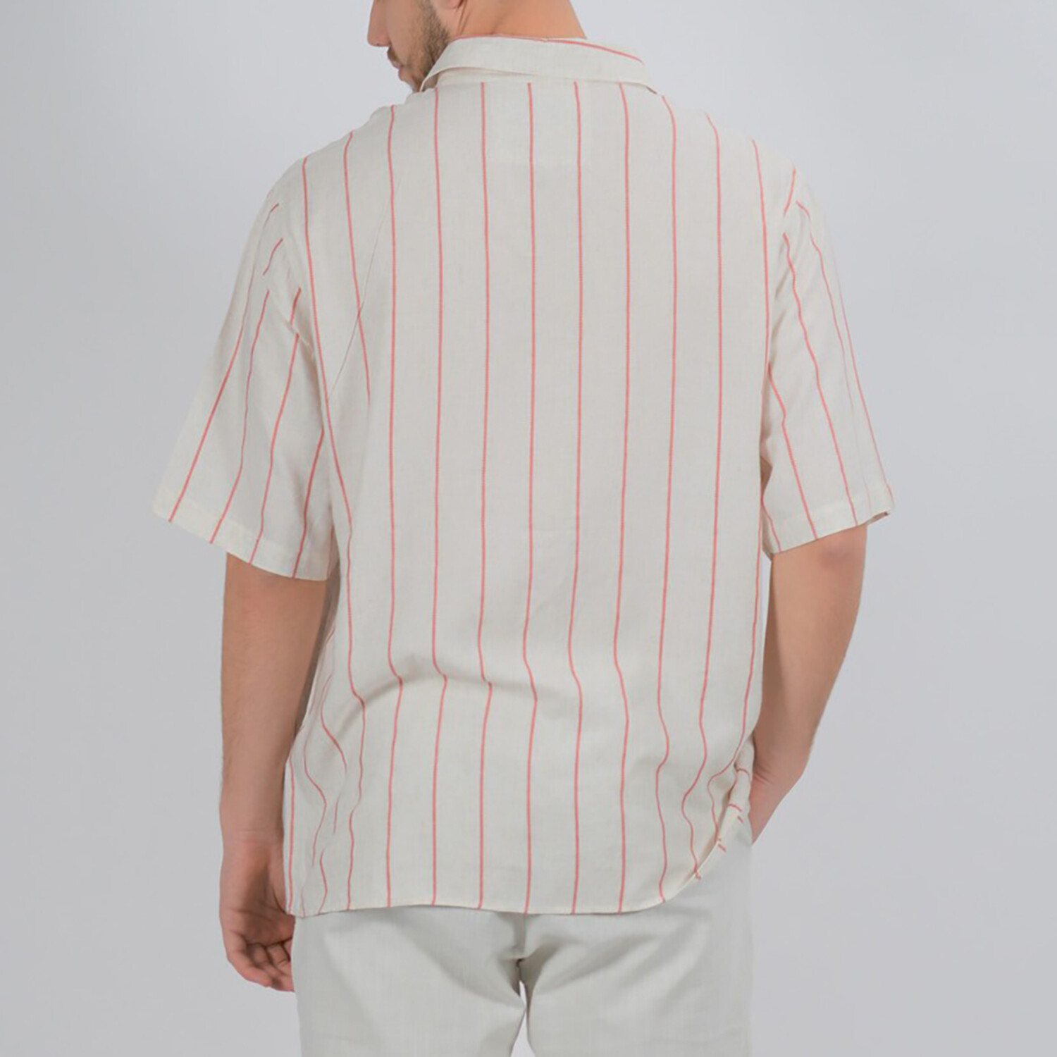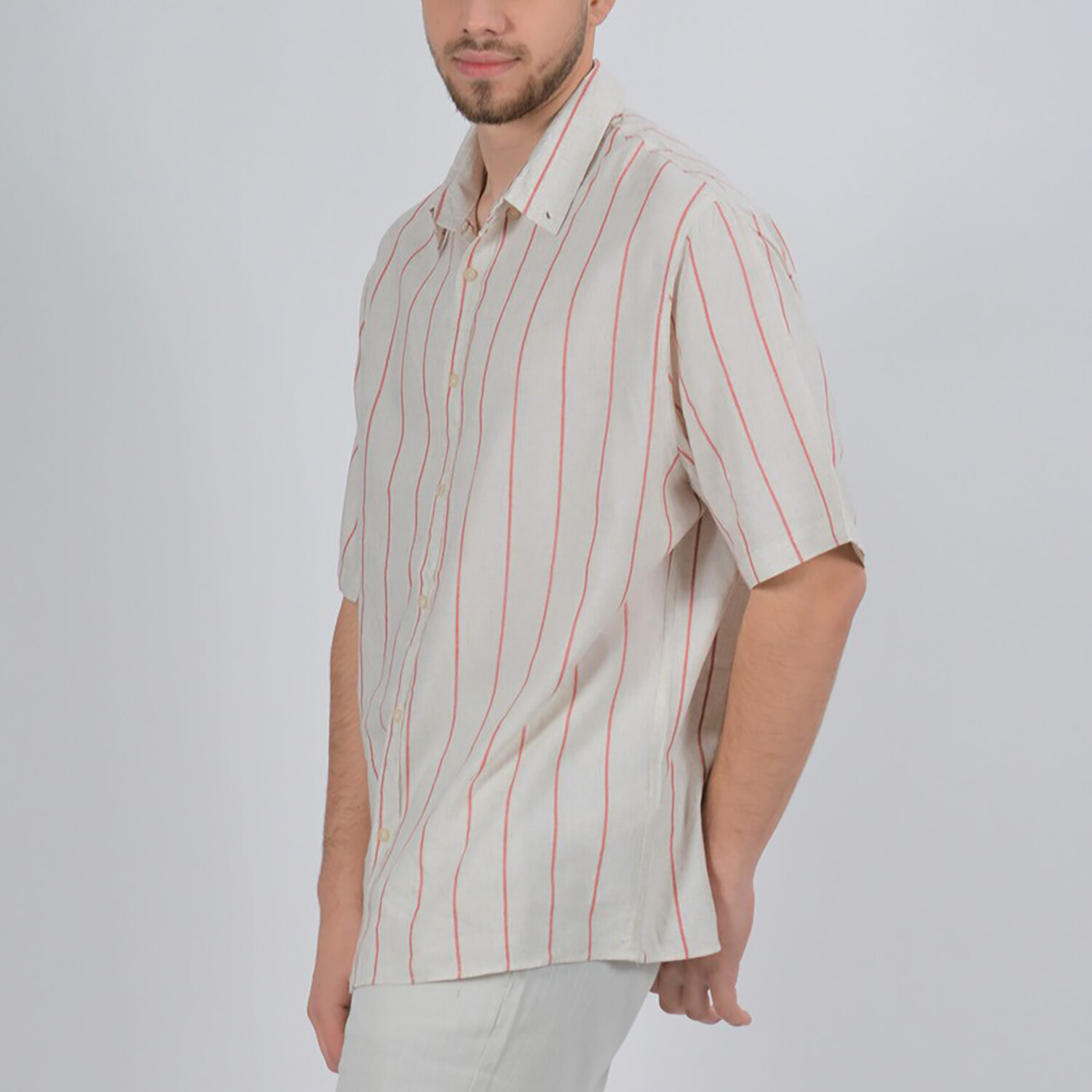 Lucas Short Sleeve Button Down Shirt // Stone + Red