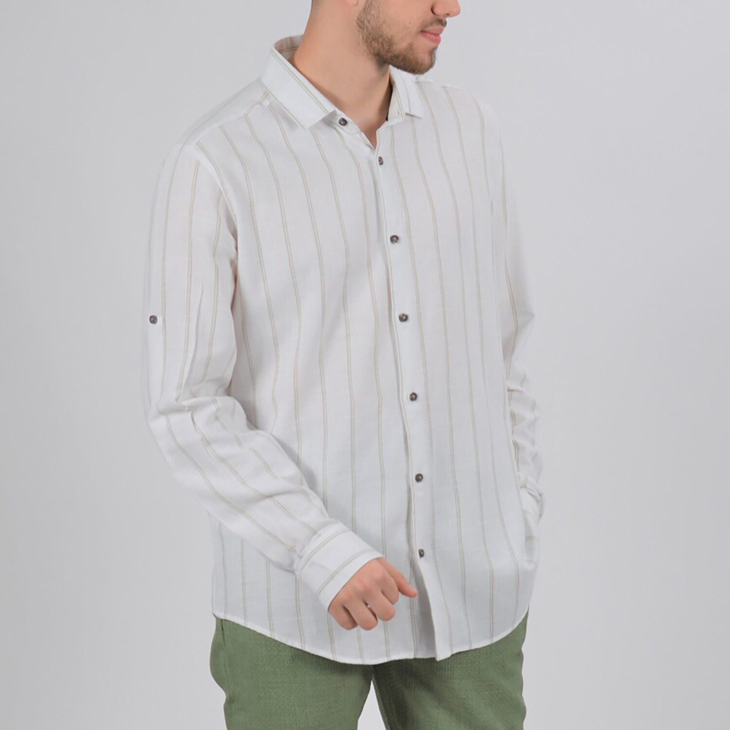 Sean Long Sleeve Button Down Shirt // White + Stone