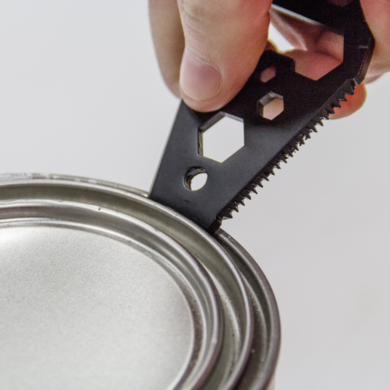 With an if-looks-could-kill striking design, this elongated hexagon delivers over 10+ functionalities in just shy of a 1.75" x 4" frame. Some of the uses include a flat screw driver, wire stripper, saw blade, bottle cap opener and more.